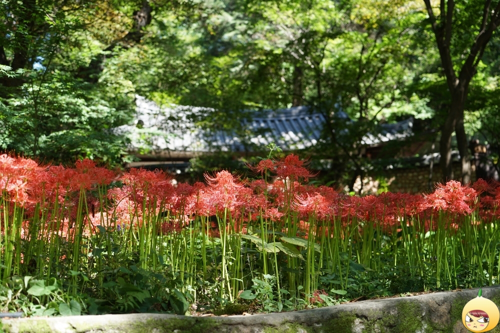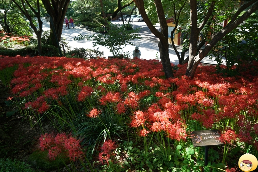 길상사 경내 곳곳에 꽃무릇이 피어있지만, 군락지는 2곳이다. 우선 들어오자마자 대웅전에 해당하는 극락전으로 올라가는 계단과 법정스님을 만날 수 있는 진영각으로 가는 길이다. 꽃무릇이 만개이다 보니, 이를 담기 위해 온 분들이 겁나 많다. 망원에 삼각대에 엄청난 장비를 들고 온 사람들 틈에서 잘 담아내야 할텐데 걱정이다.