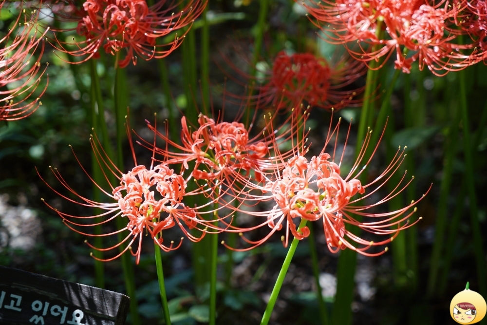 꽃무릇은 다른 식물과 달리 꽃이 진 후에야 잎이 돋아난다. 그래서 꽃과 잎은 만나고 싶어도 만나지 못한다. 꽃말이 이룰 수 없는 사랑인 것도 이런 이유이지 않을까 싶다.