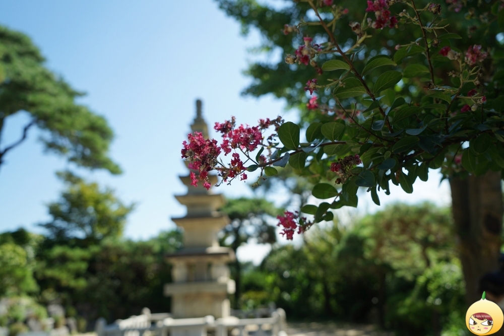 배롱나무 꽃 너머 보이는 길상사7층 보탑.
