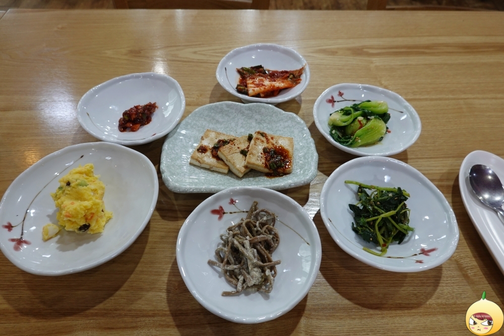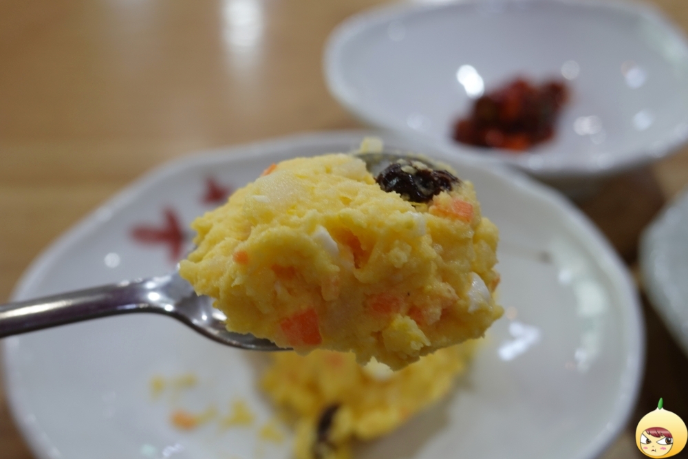 짠맛 줄인 착한식당답게 반찬은 많지만, 간이 슴슴해서 괜찮다. 계란에 오이, 당근이 들어간 단호박 샐러드는 리필까지 하고 싶었지만, 다른 반찬이 많기에 덜 달라고 하지 않는다. 두부무침에 양념간장, 남의집 엄마에게서 우리집 엄마 맛이 난다.