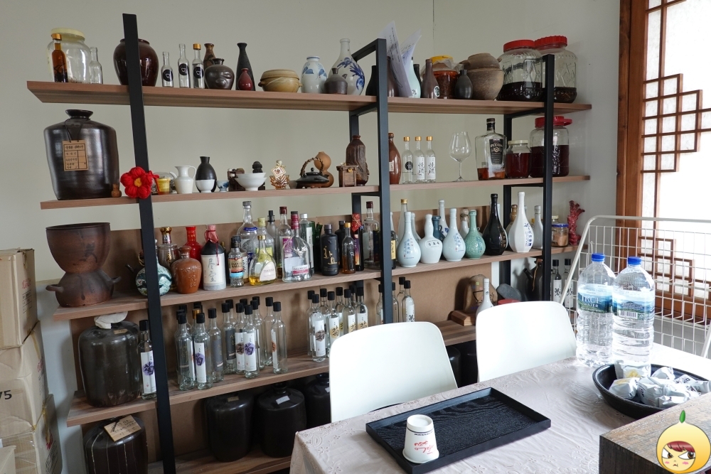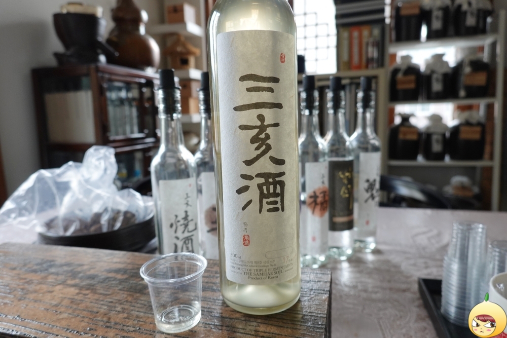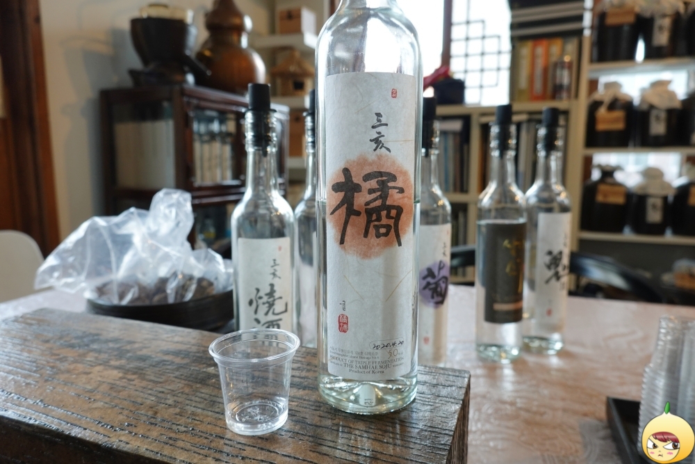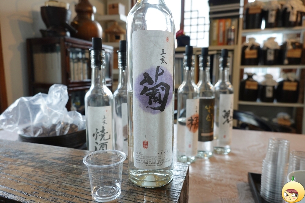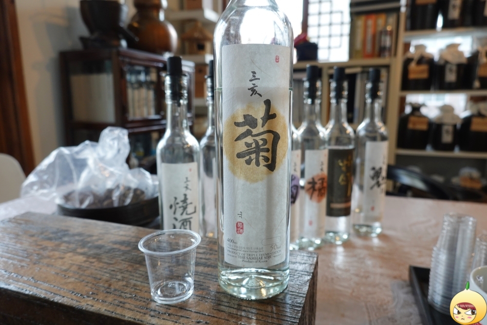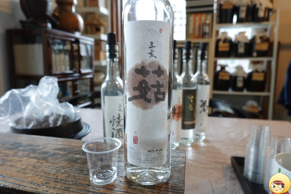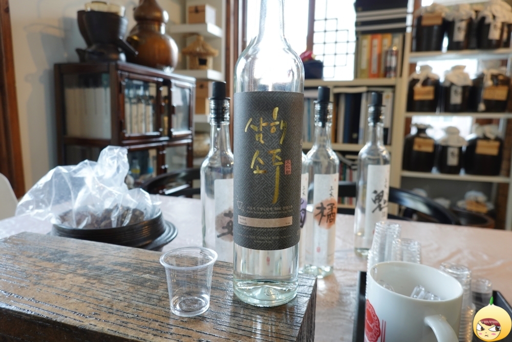 예약을 하고 갔기에 세팅이 다 되어 있다. 술 맛을 해치지 않기 위해 안주는 물과 참크래커뿐이다. 삼해소주는 워낙 독주가 많아서, 밥을 든든히 먹고 오라고 했다. 그렇게 했는데도 모든 시음이 끝나고 밖으로 나오니 하늘이 노랗게 보였다. 살짝 스포는 하면, 마지막에 마신 술은 도수가 70도짜리였다.