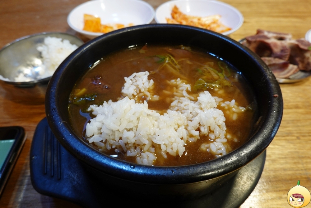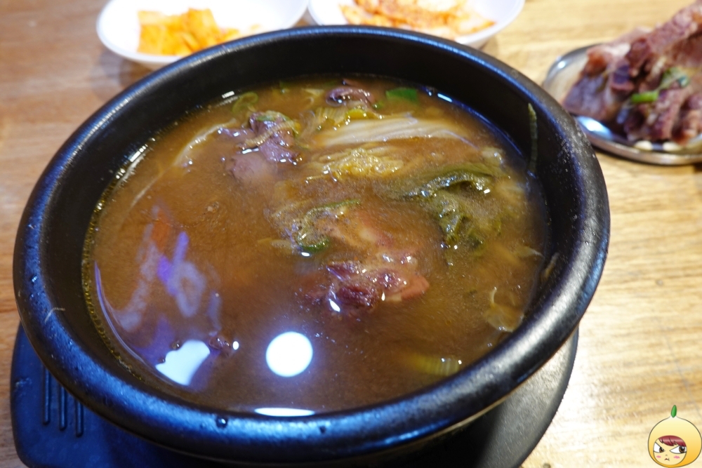 소 목뼈를 25시간 끓여 사골육수를 만든다더니, 나오는데는 25초 정도 걸렸나? 주문을 하면 바로 나온다. 아마도 혼자이고 메뉴가 해장국이니 식당 안에 들어갈때 가스렌지에 뚝배기를 올리지 않았을까 싶다. 암튼 진짜 빨리 나온다.