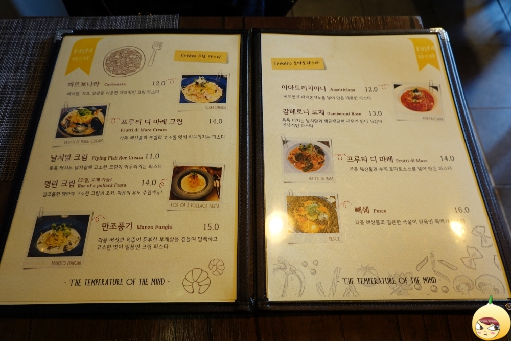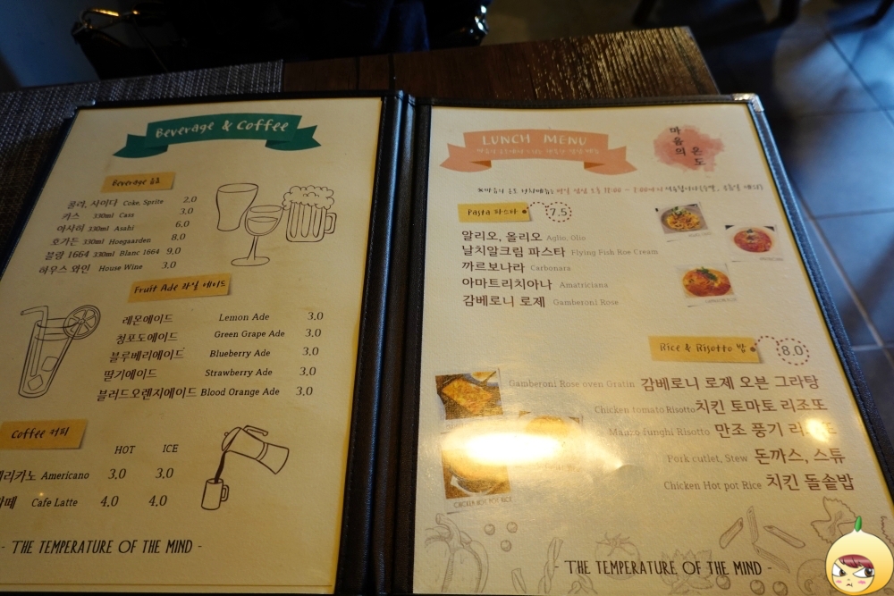 마음의 온도, 이름 치고는 넘 낭만적이다. 지난해 상진다방에 가기 위해 골목을 지나가다가 문득 걸음을 멈췄다. 처음에는 카페나 와인바인 줄 알았는데 자세히 보니 파스타전문점이다. 금방 올 줄 알았는데, 1년이나 걸렸다. 암튼 다시 왔고, 만석이라 잠시 밖에서 기다리는 중이다. 그나저나 런치메뉴가 있다. 오후 2시까지인데, 현재 시간 1시 30분이다. 이왕이면 다홍치마라고 했으니, 런치타임을 놓치지 않을 거에요~