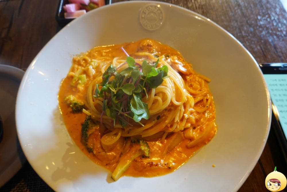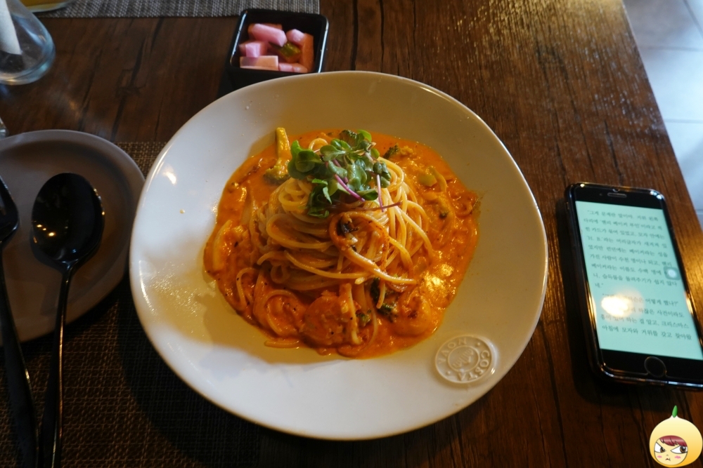 크림과 토마토가 만나면 로제가 된다. 개인적으로 오일 > 크림 > 토마토 > 로제를 좋아한다. 늘 앞에서 결정을 하다보니, 로제는 선택을 받지 못하는 경우가 태반이다. 하지만 이번에는 가격적인(원래는 13,000원, 런치는 7,500원) 장점으로 인해 감베로니 로제파스타를 골랐다.