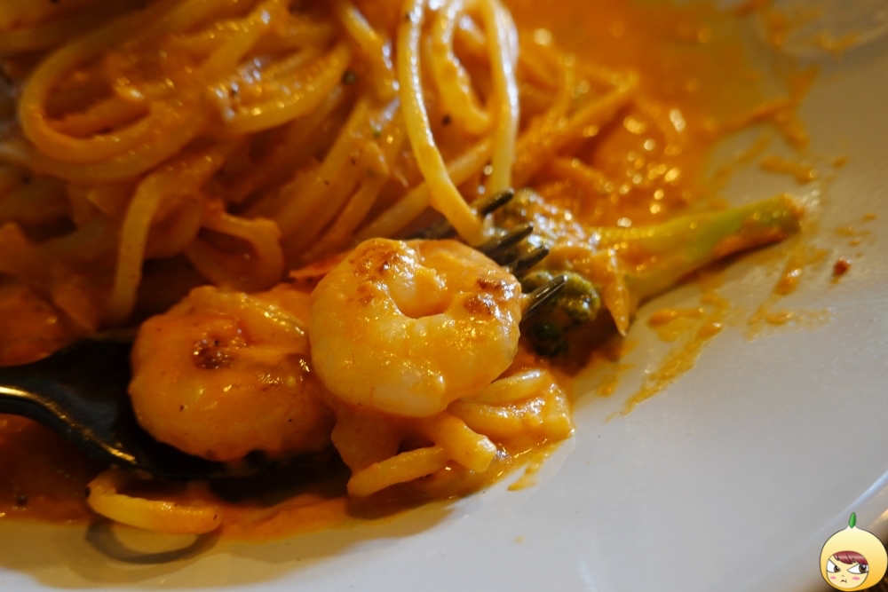 감베로니 로제 파스타는 톡톡 터지는 날치알과 탱글탱글한 새우가 만나 식감이 인상적이 파스타라고 메뉴판에 나와있다. 그런데 새우는 확실히 있는데 날치알은 잘 모르겠다. 소스에 파묻혔나? 톡톡 터지는 식감조차 느껴지지 않는다.