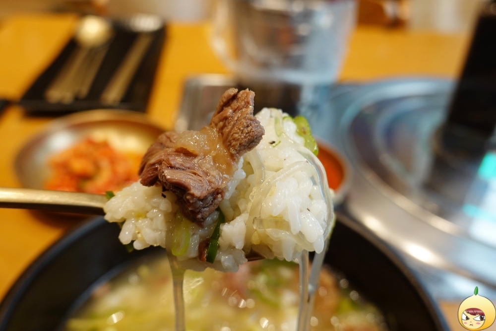 뼈를 잡고 뜯고 싶었으나, 너무 뜨거워서 쉽지가 않다. 이래서 인간은 도구를 사용해야 한다. 테이블에 있던 칼과 집게를 사용해 뼈와 고기를 분리하고, 고기는 먹기 편하게 한입 크기로 잘랐다. 고기가 질겨서 그동안 갈비탕을 즐겨 먹지 않았는데, 능라도는 아니다. 질김보다는 부드러움이 더 강하다. 뼈 한개 정도는 그냥 뜯어 먹어야 하는데, 도구 사용도 좋지만 가끔은 원시 시대로 돌아가는 것도 나쁘지 않다.