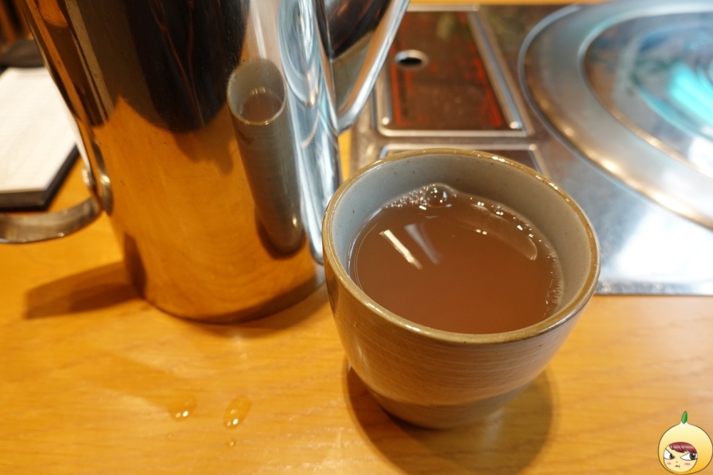 차가운 냉수를 원한다면 따로 요청을 해야 한다. 왜냐하면 테이블에는 뜨거운 면수가 들어있는 주전자만 있기 때문이다. 아직 음식이 나오기 전이지만, 능라도는 면수부터 음식이라 볼 수 있다. 그냥 물인데 할 수 있지만, 애피타이저처럼 요거 한잔을 쭉 마시면 입맛이 돌기 때문이다.