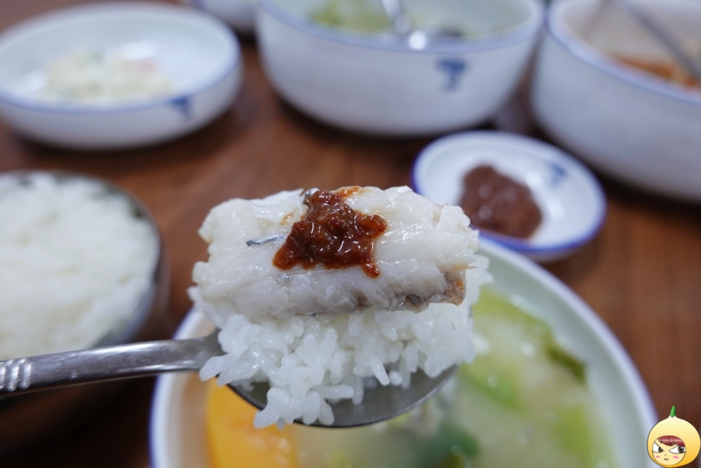 두툼한 갈치살은 마치 갈치구이를 먹듯, 밥 위에 살포시 올린다. 이 상태로도 충분히 좋지만, 자리젓을 더하면 화룡점정이 된다. 자리젓은 간도 맛도 강하니 조금만 먹어야 한다. 많이 먹었을 경우에는 물보다는 재빨리 밥으로 진화하면 된다.