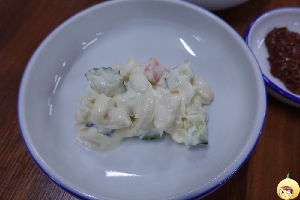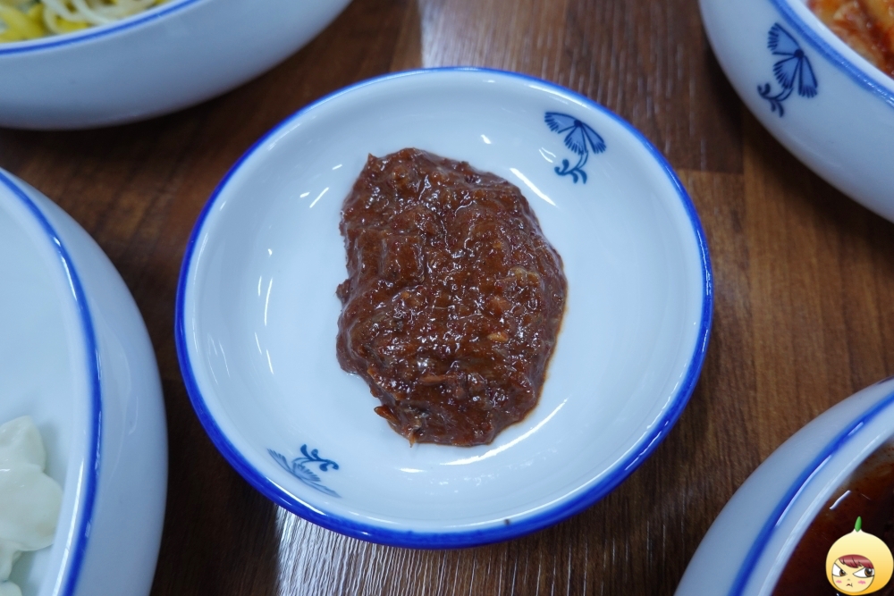 양념게장에 비해서는 양념이 과하지 않으니 꽃게무침이라고 해야 맞을 듯 싶다. 약한 양념으로 인해 게맛이 더 살아난다. 그리고 생김새는 갈치속젓과 비슷하지만, 맛을 보면 다름이 느껴진다. 요녀석은 자리젓이다. 반찬 클라쓰가 나쁘지 않은데, 언제나 메인에 집중하다보니 반찬을 잘 안 먹게 된다. 하지만 자리젓만은 일부러라도 챙겨 먹는다. 이유는 갈칫국만큼 서울에서 먹기 힘드니깐.