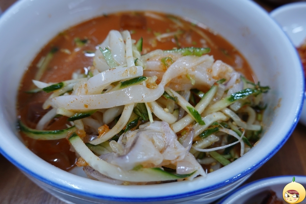 오이 싫어하는 친구와 같이 오면 한치물회는 죄다 내 차지가 될텐데, 오이를 못 먹는 친구가 없다는게 문제다. 한치만큼 오이도 잔뜩 들어있다. 겨울이지만 물회라서 얼음은 필수다.