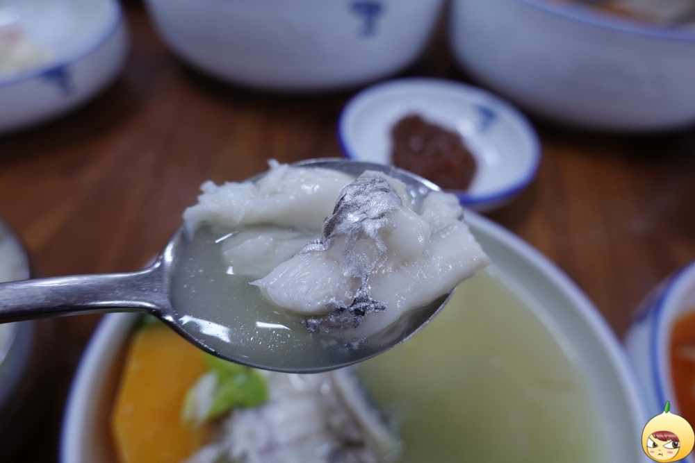 국물 속에 잠자고 있던 커다란 갈치 한조각을 깨웠다. 구이로 먹을때는 기름맛에, 조림으로 먹을때는 양념맛에 갈치 본연의 맛을 느낄 수 없었는데, 국으로 만나니 이제야 갈치가 갈치답다. 생선국이라 혹시나 하는 비린내는 그저 접어두시라. 왜냐하면 일절 없기 때문이다.
