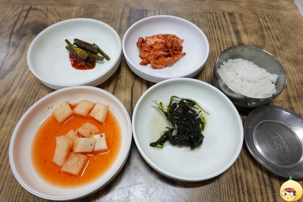 혼밥이니 반찬은 조금만, 아삭하게 잘 익은 깍두기에 향이 좋은 파래무침, 겉절이에 마늘종무침이 나왔고, 반 1/2공기도 함께 나온다.