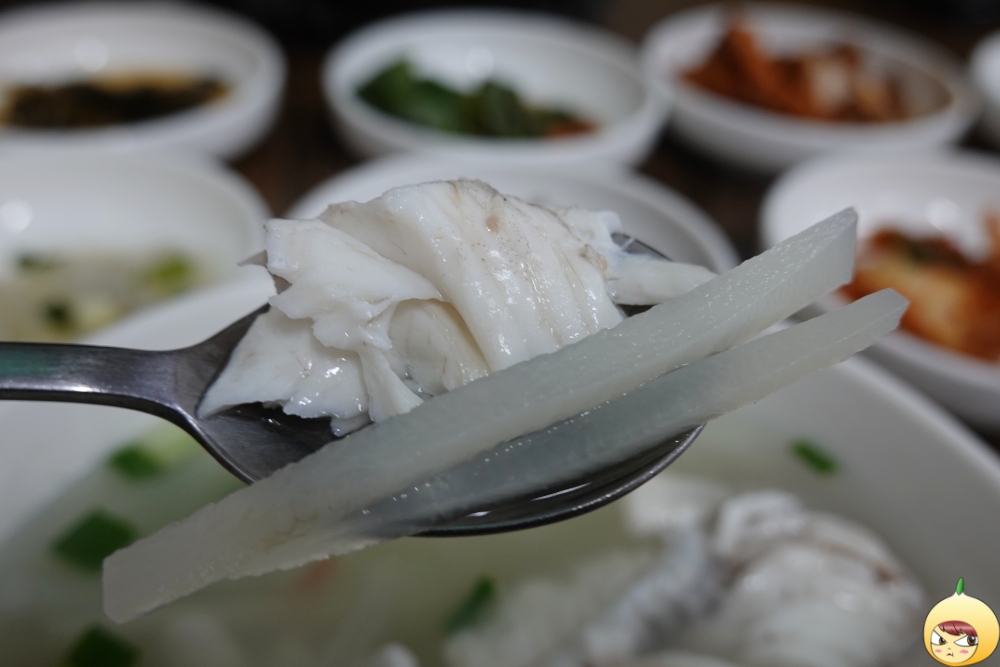 장대가 이리도 살이 많은 생선이었나? 뽀얀 속살이 한가득이다. 장대는 소금구이, 튀김, 찜으로도 먹는다는데, 그중에서 탕맛이 가장 좋다고 한다. 이번에 탕(국)을 먹었으니, 다음에는 구이나 튀김도 먹어봤으면 좋겠다.