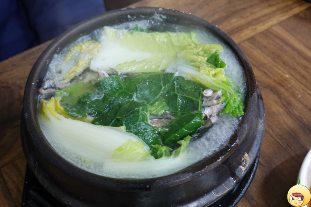 친구가 주문한 멜국은 생멸치를 넣고 끓인 국이다. 얼큰한 매운탕 스타일로 나올 줄 알았는데, 갈칫국처럼 국물이 맑다. 멸치에 없는 단맛을 보충하려는지, 달달한 알배추도 많이 들어있다. 비릿한 맛이 일절 없다고 할 수 없지만, 생선국을 좋아하는 사람이라면 충분히 먹을만 하다.