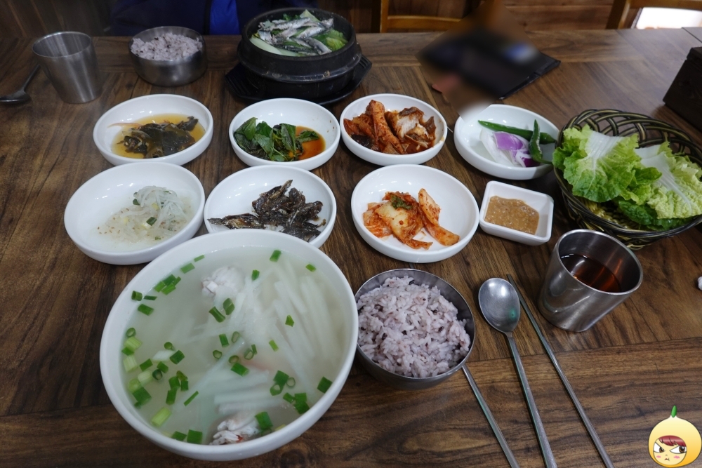 제주공항에 도착해 렌트카를 찾으러 갔다. 비행기가 공항에 착륙할때 대기가 안 좋더니, 비인지 눈인지 하늘에서 자꾸 뭐가 내려온다. 널뛰기를 하듯 날씨는 오락가락 하지만, 배고픔은 오락가락하지 않는다. 차에 타자마자 네비에 정성듬뿍제주국을 입력하고 출발한다. 이른 점심인데도, 식당 안에는 사람이 꽤 많다. 내부 사진는 포기를 하고, 서둘러 자리에 앉는다.