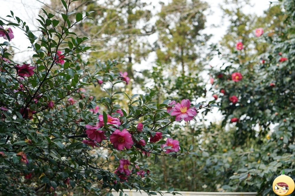 온실에서의 추억만 갖고 가려고 했는데, 화장실을 다녀온 후 흐렸던 하늘이 갑자기 맑아졌다. 그러더니 전혀 예상치 못한 흐드러지게 핀 동백꽃 아니 동백꽃길을 만났다. 방금 전까지 기대가 높으면 실망도 큰 법이야 하면서 혼자서 투덜투덜대고 있었는데, 지금은 말조차 나오지 않는다. 서둘러 하이엔드에서 풀프레임으로 카메라를 바꾸고, 날씨가 다시 흐려지기 전에 지금 이순간을 담아야 한다.