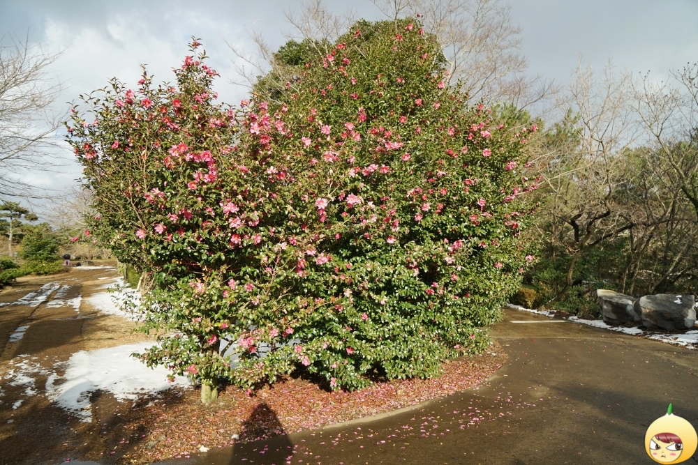 카멜리아힐에는 80개국의 동백나무 500여 품종이 있으면, 약 600여 그루의 나무가 있단다. 요맘때 피는 동백은 애기동백이라고 불리는 외래종으로 꽃이 통째로 떨어지는 토종동백과 달리 꽃잎이 낱장으로 떨어진다.