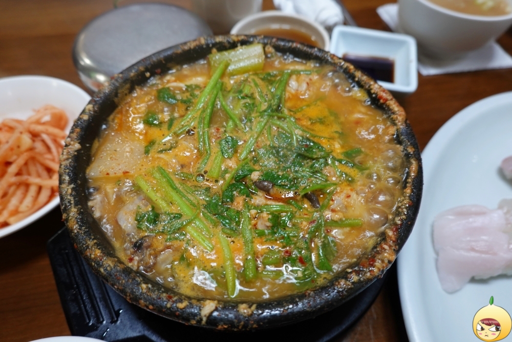 생선조림이 기본찬으로 나오다니, 메인이 나오기도 전이데 재방문 의사 200%다. 어느 생선인지 물어보니, 대구도 있고 우럭도 들어 있단다. 생선을 손질하다가, 회나 탕에 쓸만한 부위가 아니면 이렇게 조림으로 만들었지 않았을까 싶다. 큼지막한 무도 들어 있고, 반찬이라고 무시하면 절대 안된다. 이거 하나만으로도 밥 한공기 순삭일테니깐.