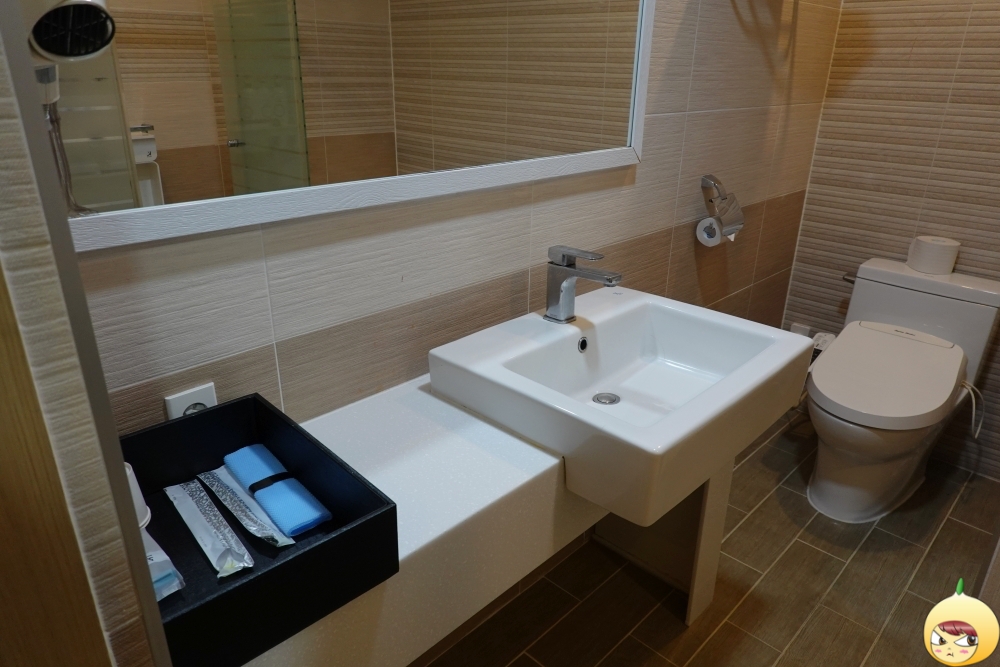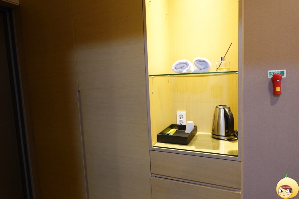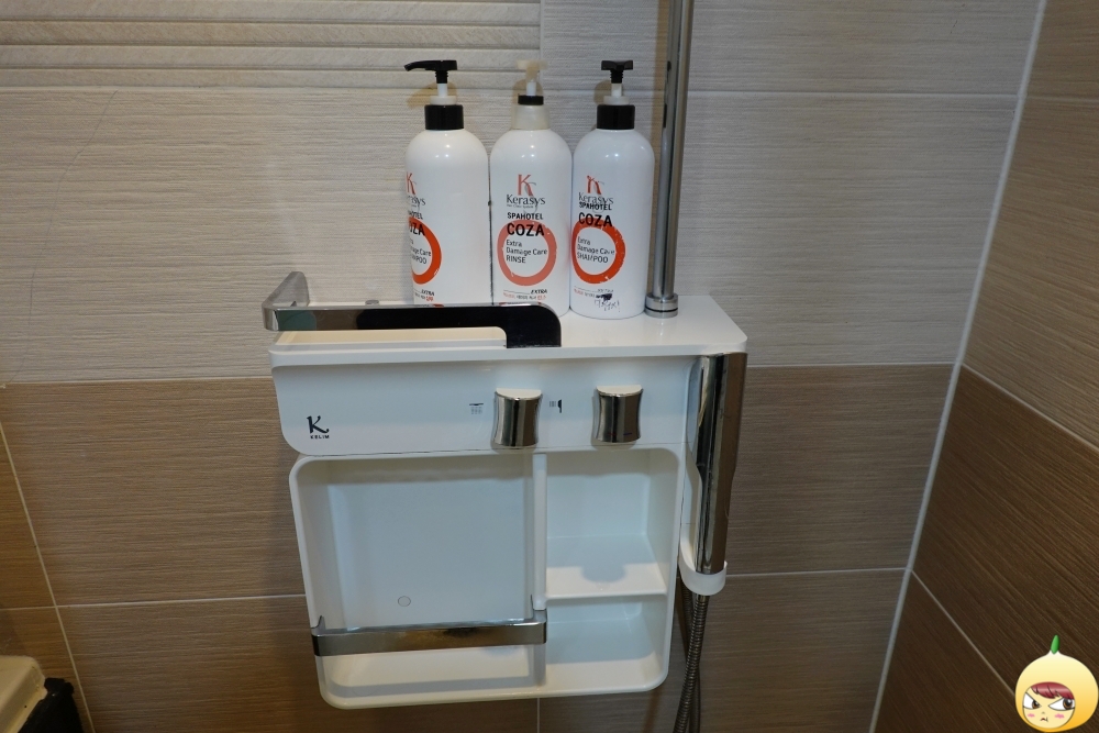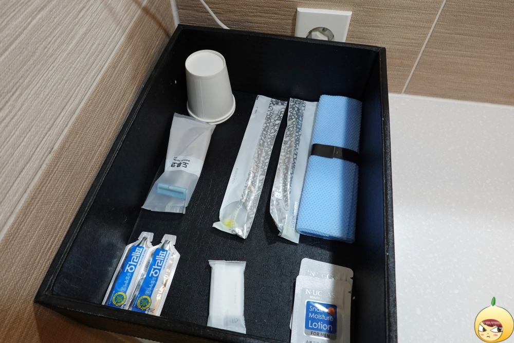 호텔이니 치약, 치솔 등 세면도구가 당연히 준비되어 있지만, 늘 따로 챙겨 간다. 고데기는 없지만, 드라이기는 있다. 세면대 옆으로 공간이 넉넉해 갈아입을 옷에 개인세면도구까지 다 갖다 놓아도 된다. 샤워부스는 칸막이로가 있어 물이 튈 염려는 전혀 없다.