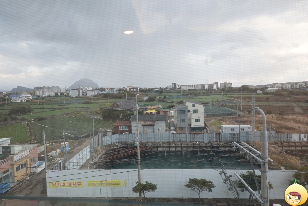 바다뷰까지 기대한 건 아니지만, 공사장 전망은 그닥 맘에 들지 않다. 왼쪽으로 희미하게 산은 혹시 산방산이 아닐까 조심스럽게 추측해본다.