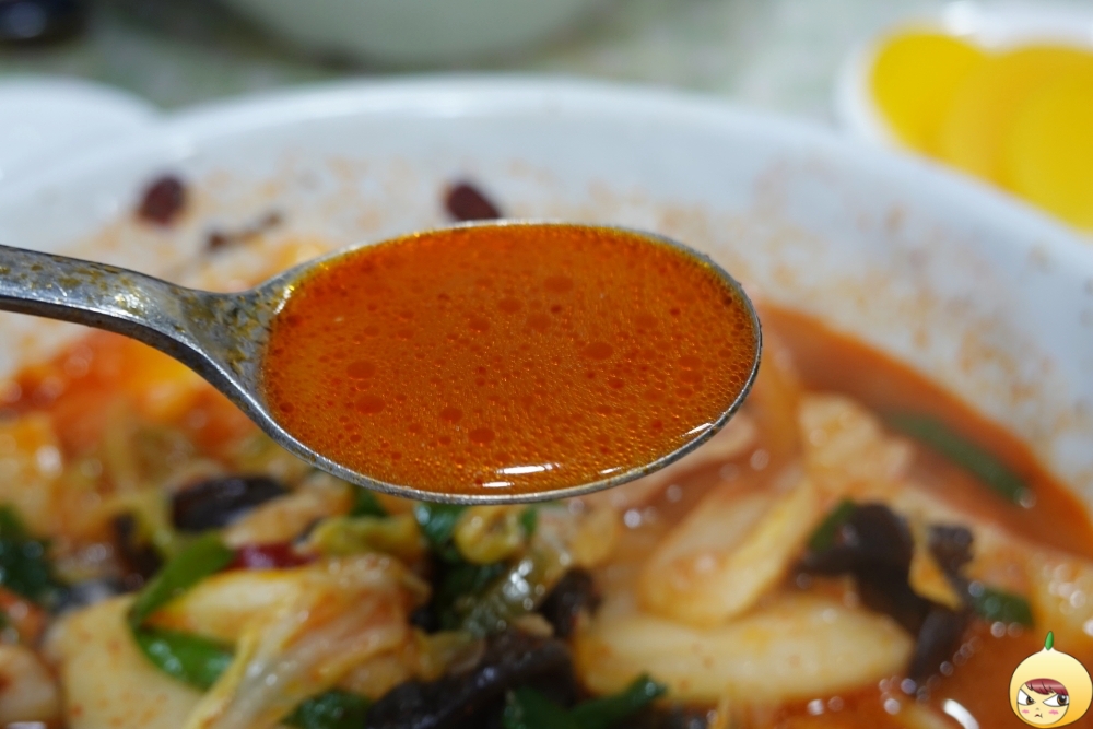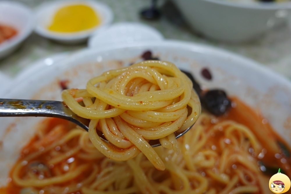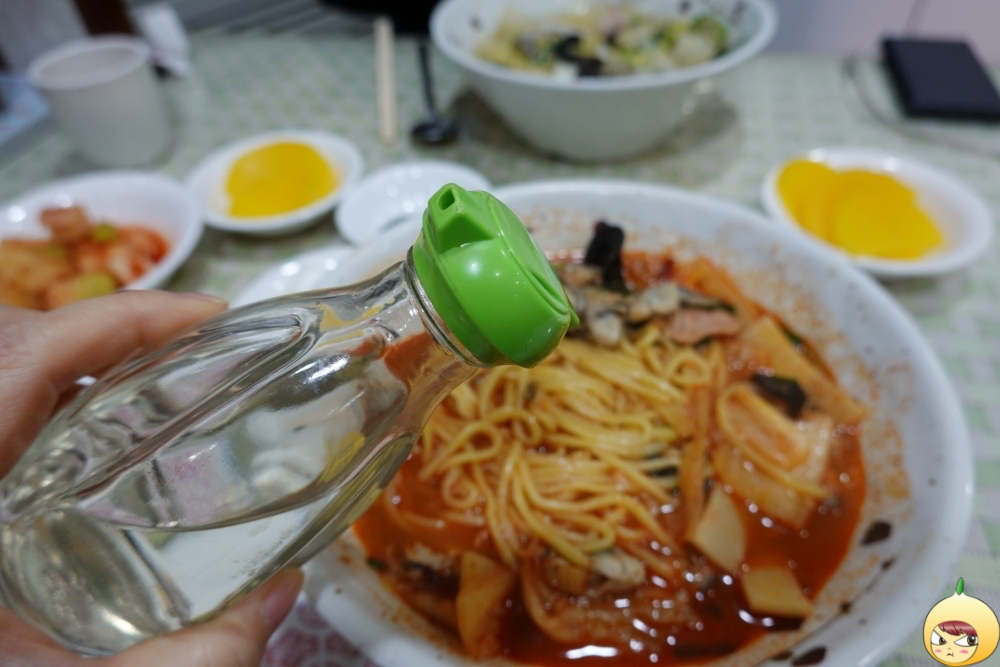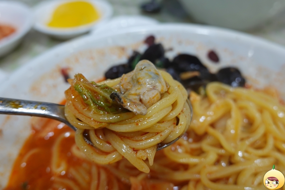 매운 굴짬뽕답게 국물은 빨간맛이다. 국물만 보면 일반 짬뽕과 비슷하다 느끼겠지만, 굴짬뽕이라서 불향이나 불맛은 없다. 식초가 싫다는 친구는 짬뽕을 그냥 먹지만, 식초를 좋아하기에 늘 그러하듯 먹기 전에 식초부터 넣는다. 단무지가 2개인 이유는 별생각없이 식초를 넣고 나니, 친구왈 식초 과다 단무지를 싫어한단다. 배려를 했어야 하는데, 나의 실수다.