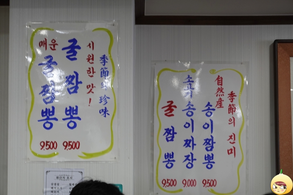 중국집이니 묵직한 메뉴책(판)이 있지만, 뭘 먹을지 언제나 정하고 오기에 벽면을 바라본다. 이번에는 둘이 왔으니, 굴짬뽕 하나 매운 굴짬뽕(9,500원) 하나를 주문했다. 더불어 군만두도 주문했는데, 솔드아웃이라서 아쉽게 못 먹었다.