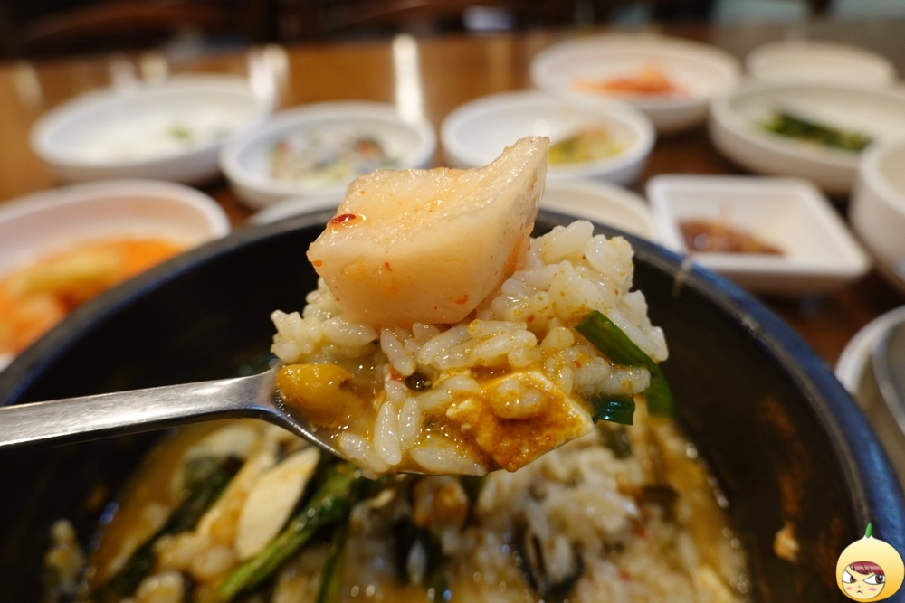 누가 멍게굴탕 아니랄까봐, 멍게향이 진동을 한다. 비주얼은 흡사 된장찌개처럼 보일 수 있지만, 된장 때깔이 아니라 주황빛깔 멍게 때깔이다. 멍게굴탕이라고 해서 멍게 모양이 살아 있는 줄 알았는데 다져서 숙성을 시킨거라서 국물에 다 풀어져 있다.