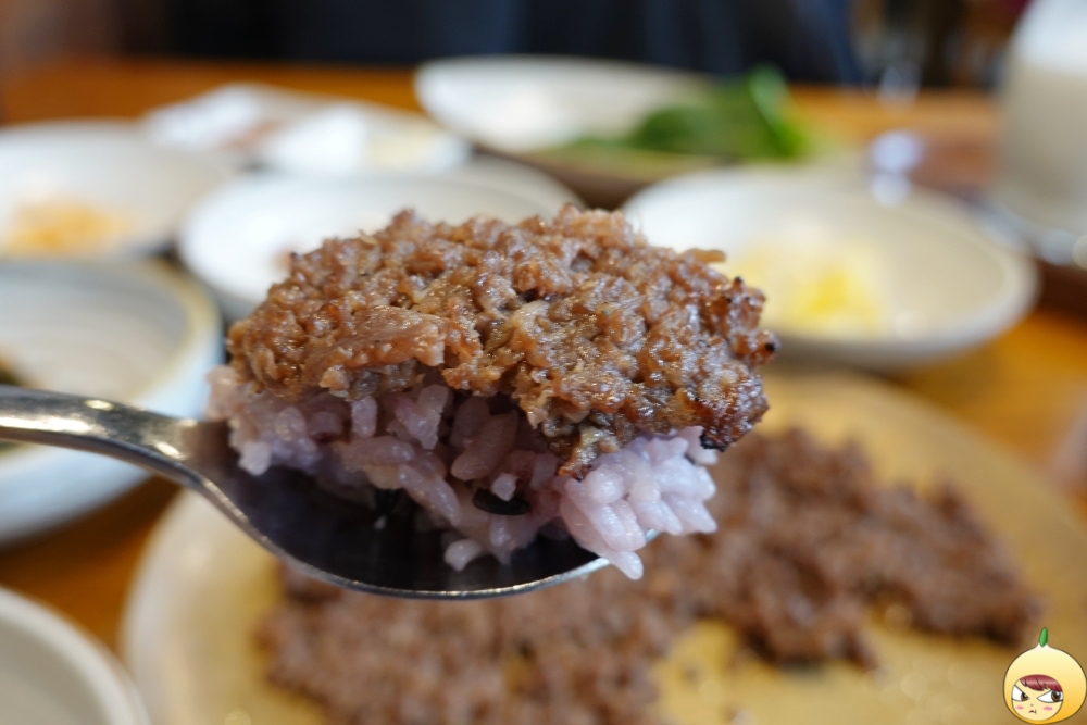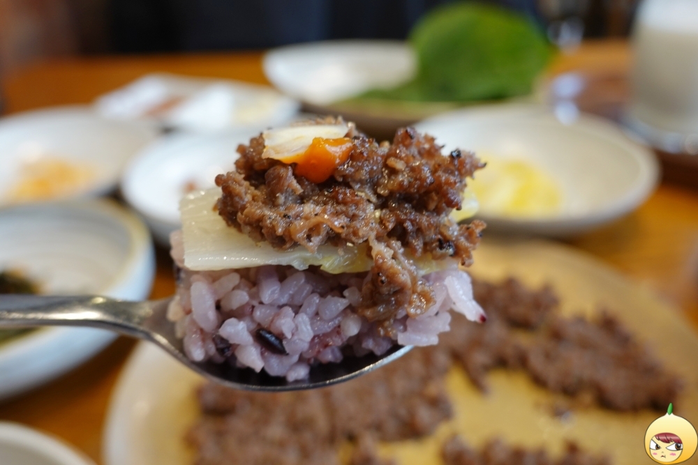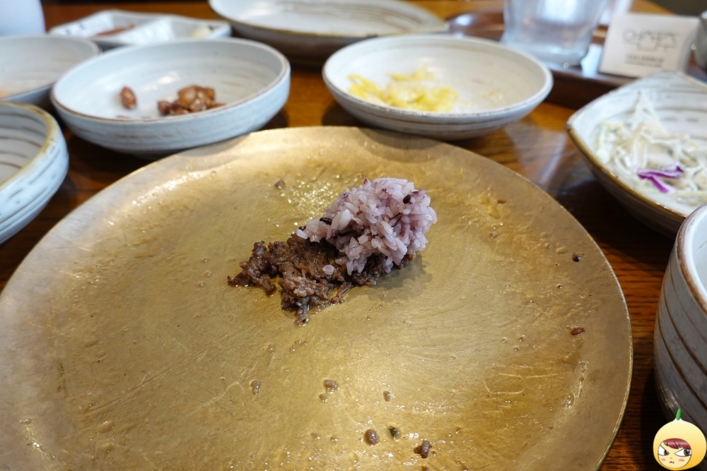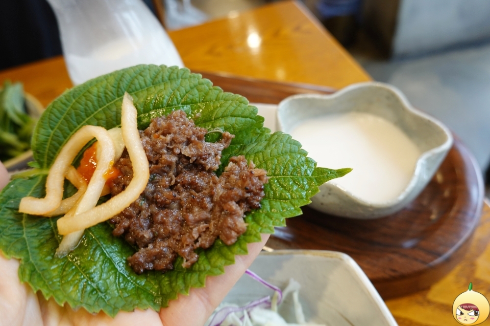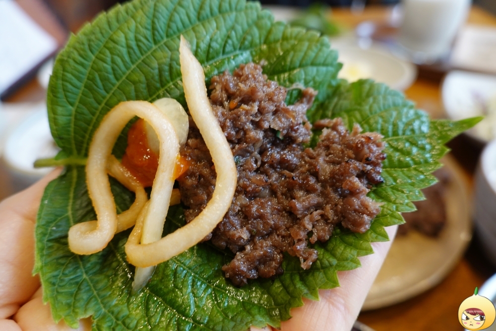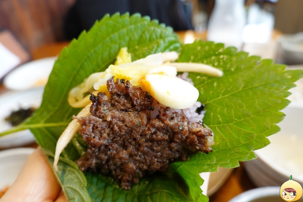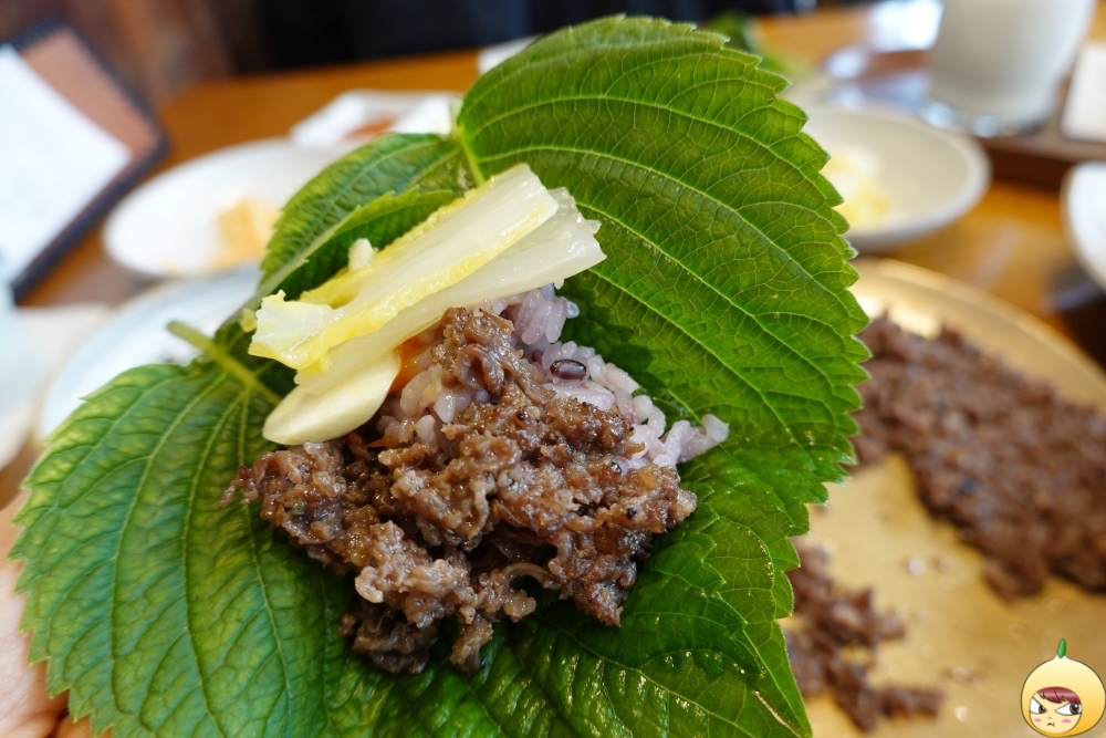 생고기와 달리 불고기는 양념으로 인해 밥과 같이 먹어야 더 좋다. 깻잎으로 인해 불고기 맛이 덜 날까 걱정한다면 오산이다. 깻잎향이 더해졌을뿐, 불고기 맛은 절대 해치지 않는다. 깻잎에 마늘, 알배추나물 등 요란함을 없애고 오직 밥과 바싹불고기만 먹는다. 단순할 수 있지만 부족함은 없다.