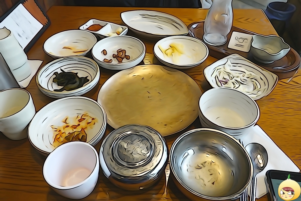 왼쪽은 바싹불고기를 주문했을때 나오는 반찬이고, 오른쪽은 일반적으로 나오는 기본찬이다. 쌈채소는 깻잎만 나오고, 동치미와 샐러드 그리고 마늘과 쌈장이 나온다. 지난번에는 황석어젓이 나왔다. 먹으면서 뭔가 부족하다 싶었는데, 황석어젓이 없음을 이제야 발견했다.