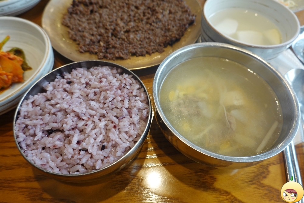 얇아서 육즙이 없을 거 같기도 한데, 굽는데 스킬이 있는지 퍽퍽함은 일절 없고 촉촉하고 부드럽다. 여기에 정식이라서 공깃밥과 소고기뭇국이 같이 나온다. 그나저나 역전회관은 밥 인심이 참 후하다. 다른 식당과 달리 밥공기가 다른지 밥이 은근 많다.