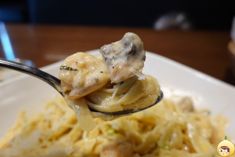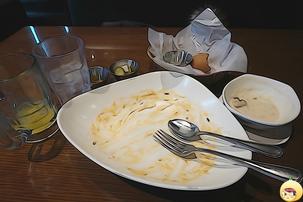 주문할때 소스를 넉넉하게 해달라고 부탁을 했기 때문일까? 좀 넉넉하게 나온 듯 싶다. 여럿이 와서 먹기에 파스타와 집게가 같이 나온다. 허나 혼밥이니 집게와 앞접시는 가볍게 옆으로 치운다. 어차피 혼자서 다 먹을 거니깐, 덜어서 먹지 않고 바로 공략을 한다. 포크를 이용해 면을 돌돌 만다. 소스가 꾸덕하니 넙데데한 면에 알아서 덕지덕지 붙어있는다. 한입 크기로 말아서 입가에 묻히지 않고 깔끔하게 먹으면 끄읕.
