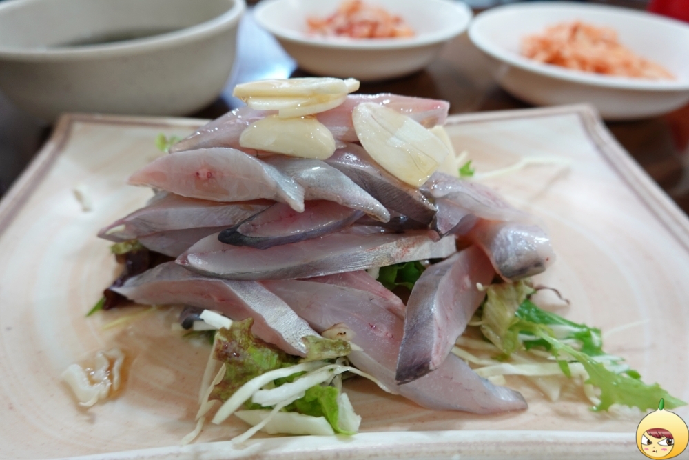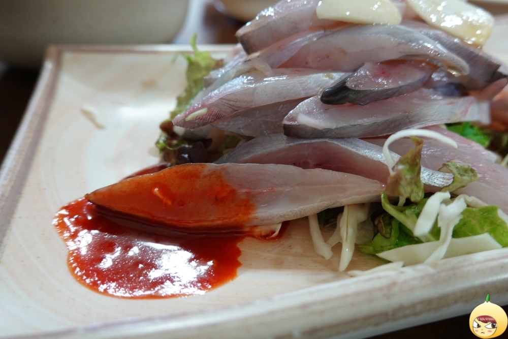 이번에는 녹색이가 아니라 파랑이와 함께 한다. 병어회는 고소한 참기름으로 인해 간장보다는 초장을 더해 회무침으로 먹어야 한다. 하지만 처음부터 초장범벅을 하기 싫어서, 살짝 찍어서 먹는다. 뼈가 살짝 강하긴 하지만 씹으면 씹을수록 고소함이 올라온다.