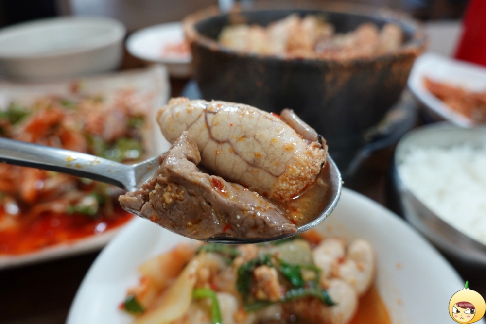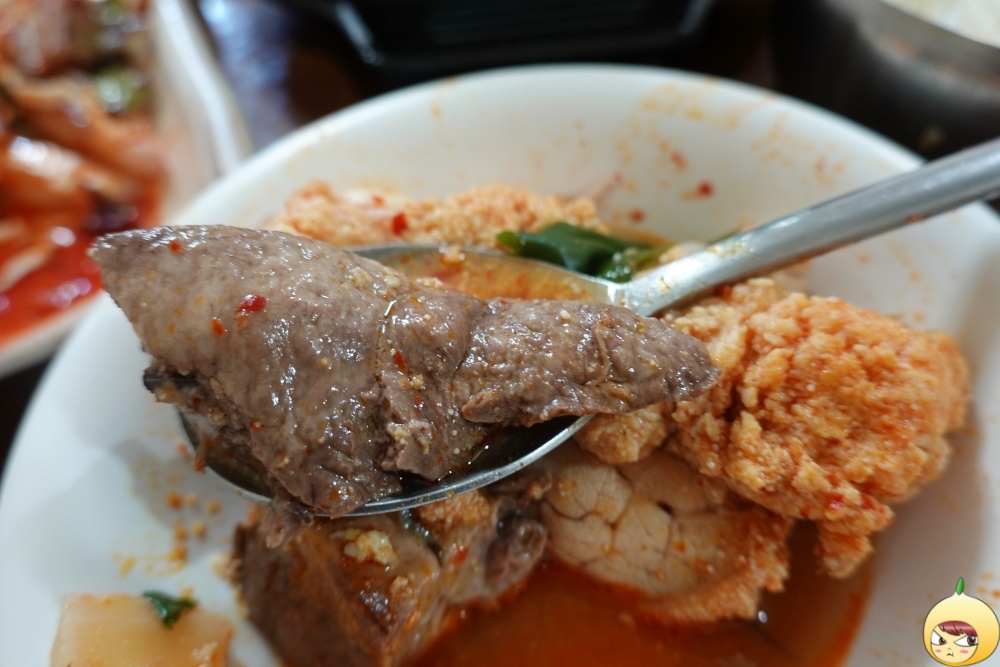 알탕이라 쓰고 애탕이라 읽어야 할 정도로 커다란 애(간)가 꽤 많이 들어있다. 순대를 주문하면 함께 나오는 간은 퍽퍽하기 그지 없는데, 요건 푸아그라가 부럽지 않을 정도로 기름진 고소함에 부드러움까지 경이롭다. 자칫 밋밋할 수 있는 알탕의 맛을 풍성하게 만드는 주인공이다.
