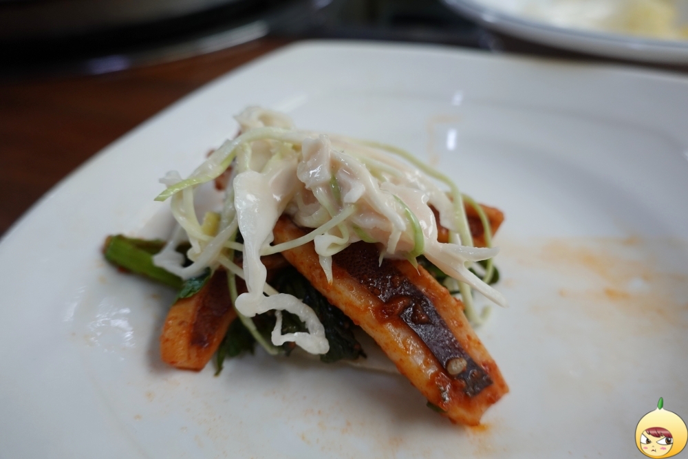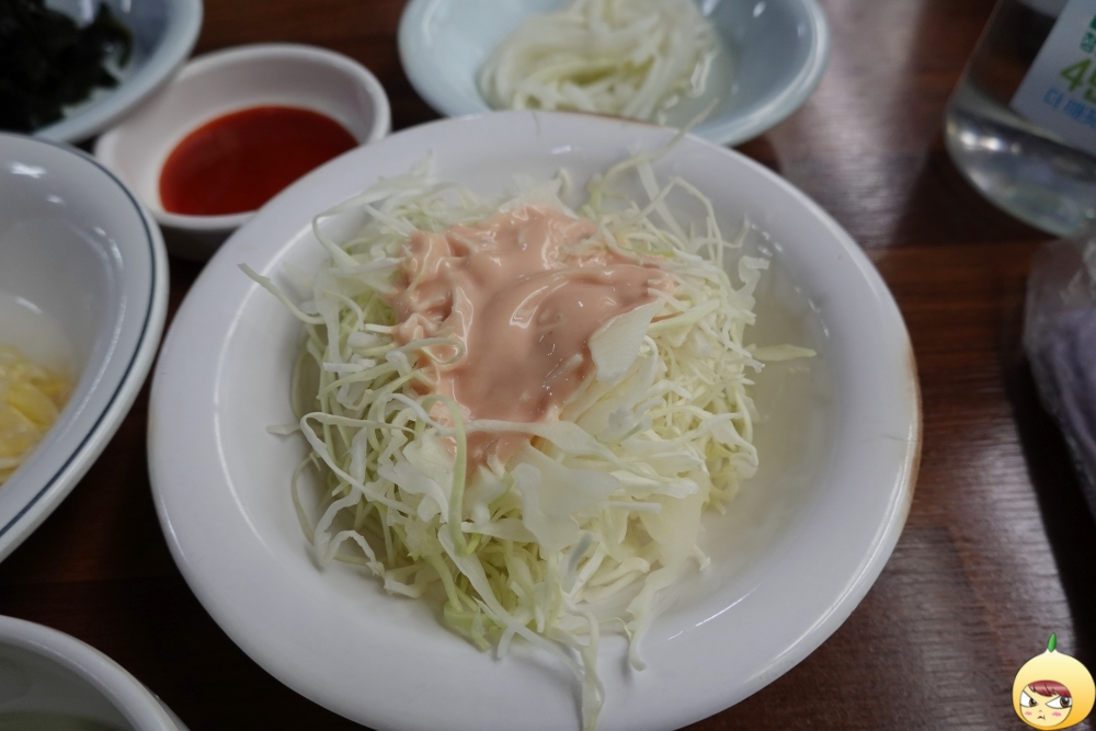 매운맛이 매력인데 그 맛이 사라져서 아쉽기도 하지만, 먹기 편하니 좋다. 하지만 매운맛을 원한다면, 메뉴판에도 나와 있듯 주문할때 미리 말을 해야 한다. 기본찬은 죄다 매운맛 잡는 녀석들이지만, 맵지 않아도 괜찮다. 무생채와 백김치는 아삭 시원한 맛으로, 케첩과 마요네즈를 품은 양배추 샐러드는 굳이 설명하지 알아도 미친 조합이니 아니 좋을 수 없다.