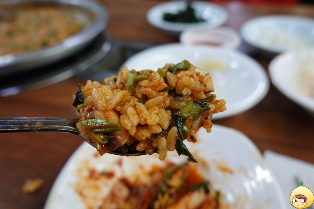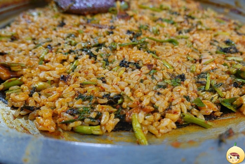 예전에는 직접 볶아서 먹었던 거 같기도 하고 아닌 거 같기도 하고 암튼 기억은 잘 안나지만, 지금은 직원이 다 볶아서 준다. 미나리를 처음부터 많이 넣어서 볶지 않고, 조리가 끝난 후 미나리가 추가로 나왔다. 더 볶아줄까 물어보는데 괜찮다고 했다. 왜냐하면 푹 익은 미나리와 생미나리를 동시에 먹을 수 있기 때문이다.