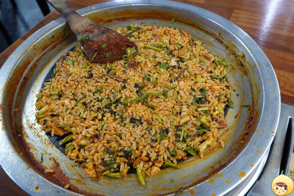 공깃밥을 참았던 이유는 볶음밥 때문이다. 밥을 볶기 딱 좋은 팬이니 볶음밥을 아니 먹을 수 없다. 밥에 김가루 그리고 참기름까지 더해 탄듯 안탄듯 노릇하게 볶는다. 볶음밥도 직원이 다 알아서 해준다. 오징어불고기만 먹을때 내내 아쉬움이 있었다. 이럴때는 필요한 건 뭐다? 볶음밥이다. 이래서 사람은 탄수화물을 먹어야 하나보다.