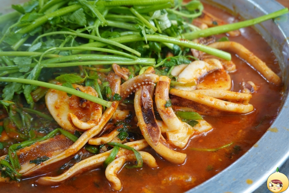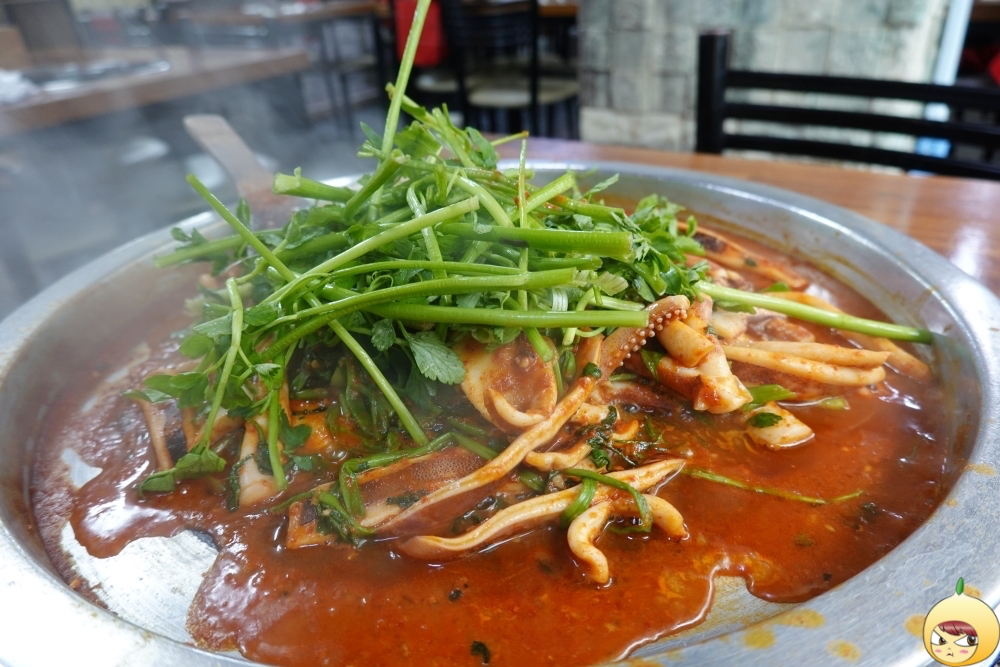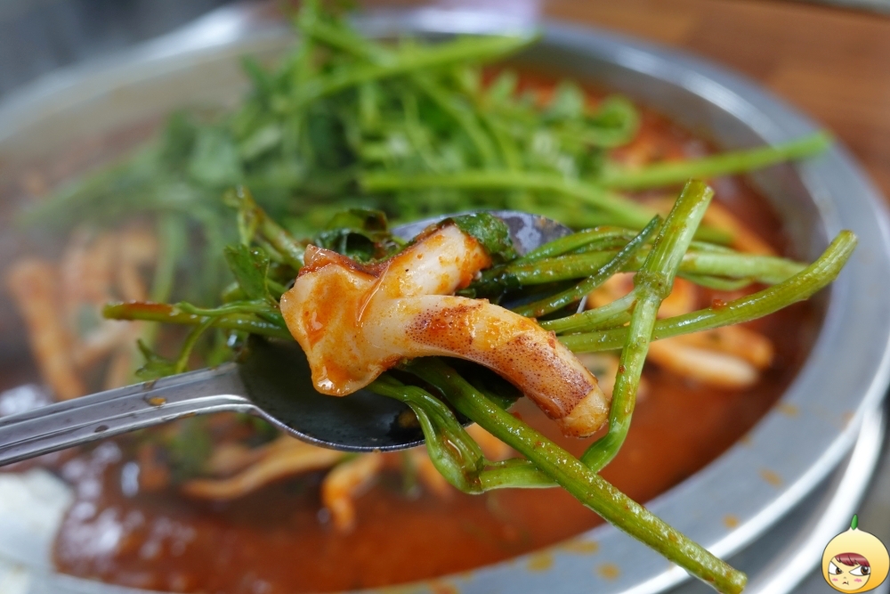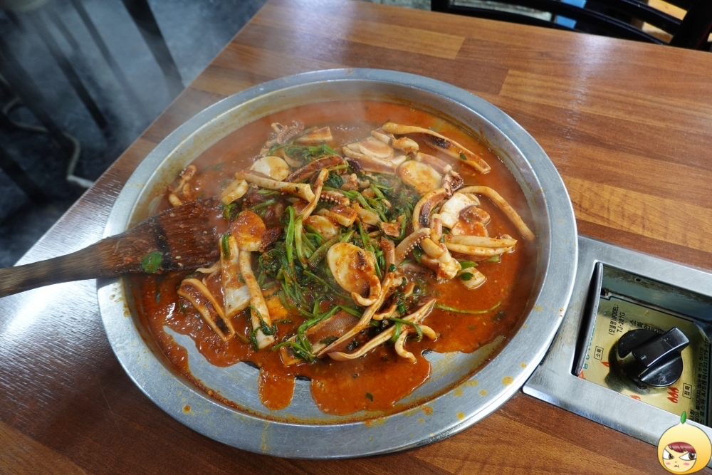 오첨지의 장점은 미나리 인심이 후하다. 그래서 미리 요청을 했고, 나중에 미나리를 추가하면 양념을 더 넣어야 할지 모르니 처음부터 미나리를 많이 준다고 했다. 그런데 오징어불고기가 나왔는데 생각보다 미나리가 그리 많이 보이지 않는다. 중간에 주문이 꼬였나 싶었는데 괜한 오해였다.