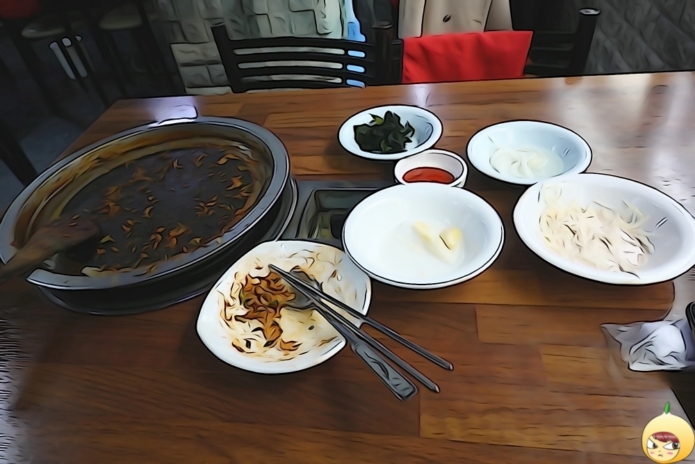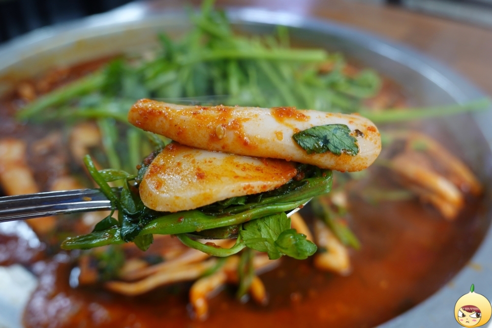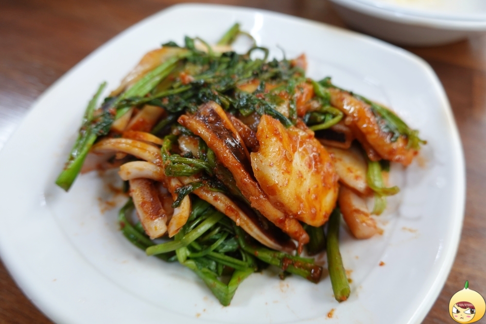 오징어불고기에는 주인공인 오징어와 쫀득한 가래떡 그리고 미나리가 들어 있다. 재료가 다양하지 않지만, 양념때문인지 은근 중독성이 강하다. 오징어가 주인공이긴 하나, 이번에는 딱봐도 미나리가 주인공이다. 더구나 제철이라 맛과 향이 훨씬 좋다. 그나저나 예전에는 무지 매웠는데 지금은 일절 안맵다. 직원에게 물어보니 예전과 달리 요즘은 맵게 하지 않는단다.