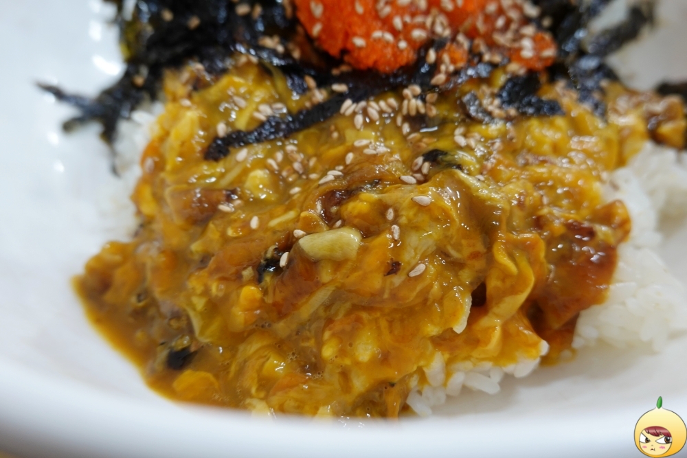 멍게비빔밥도 멍게 맛을 살리기 위해 양념에 내용물도 과하지 않은데, 미더덕덮밥 역시 그렇다. 날치알은 식감을 위해서 넣은 듯 싶고, 김가루는 밥 아래 깔린 참기름처럼 고소함을 담당한다. 그리고 다진 미더덕이 가득 들어 있다. 멍게가 밝은 주황색이라면, 미더덕은 붉은 빛이 도는 진한 주황색이다.