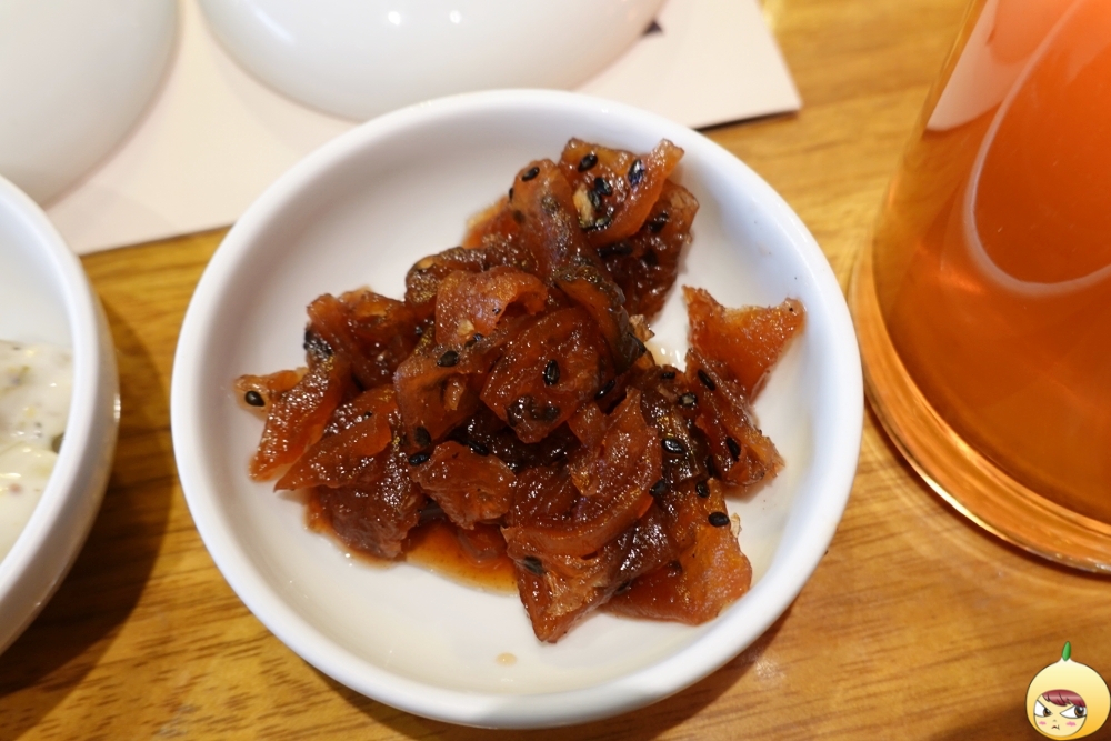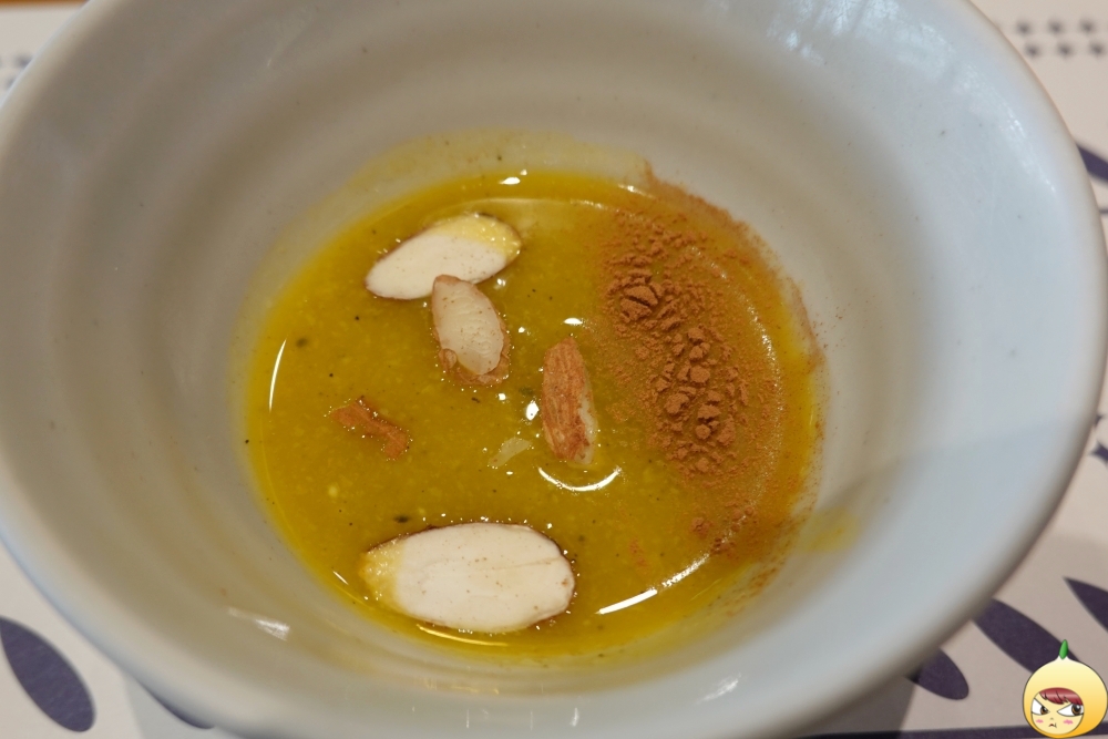반찬마다 뚜껑이 덮혀있어 살짝 병원느낌이 나긴 했지만, 청결을 위해서라고 생각하기로 했다. 3가지 반찬과 겨자향 나는 호박죽이 기본으로 나온다. 김치와 장아찌는 익숙한데 가운데 있는 반찬은 낯설다. 뭐지 싶어 먹었는데, 회나 초밥을 먹을때 나오는 락교(염교)다. 소스때문인가? 맛이 겁나 독특하다. 직원에게 물어보니, 마요네즈와 요거트로 만든 소스라고 한다. 그저 소스 하나를 더했을 뿐인데, 맛이 고급지다.