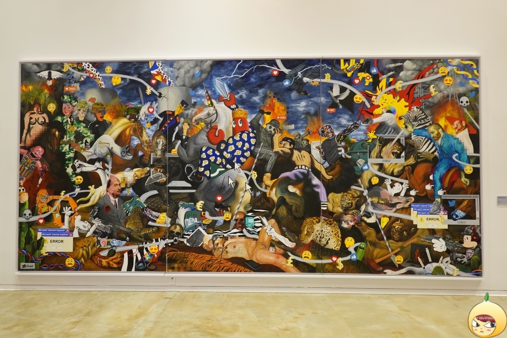 앤디 워홀, 빈센트 반 고흐, 파블로 피카소 등 세계적인 화가의 명화와 나이키, 코카콜라, 비트코인 등 상업 이미지와 브랜드들에서 인용한 다양한 기호와 상징들로 친숙하고 유쾌한 느낌을 전달하는 필립 콜버트의 회화작품이다.