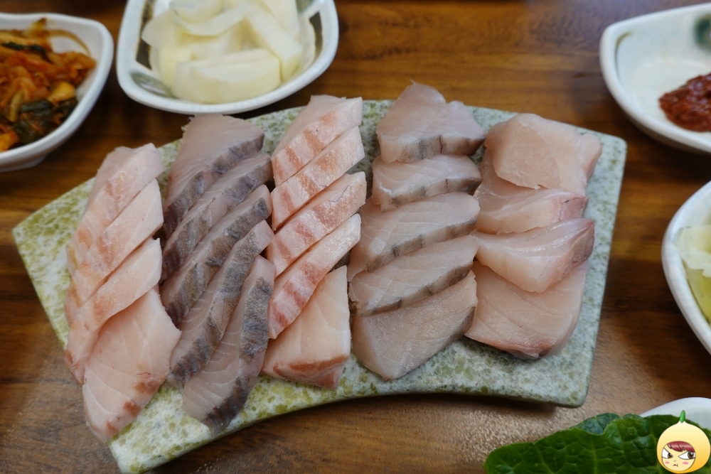 삼치회다. 활어는 아니고 선어회(숙성회)다. 삼치는 구이로만 먹었지만, 회는 처음이다. 때깔에 따라 부위가 다르다고 하고, 분명 어느 부위라고 들었는데 메모를 하지 않으면 기억이 삭제가 된다. 뱃살과 등살 부위라고 했던 거 같기도 하고 아닌 거 같기도 하고 모르겠다. 회를 처음 먹는 사람은 아니지만, 다른 회에 비해 삼치회는 엄청 두툼하다. 참, 일반 삼치는 아니고 회로 먹는 삼치는 주로 대삼치를 사용한다고 한다.