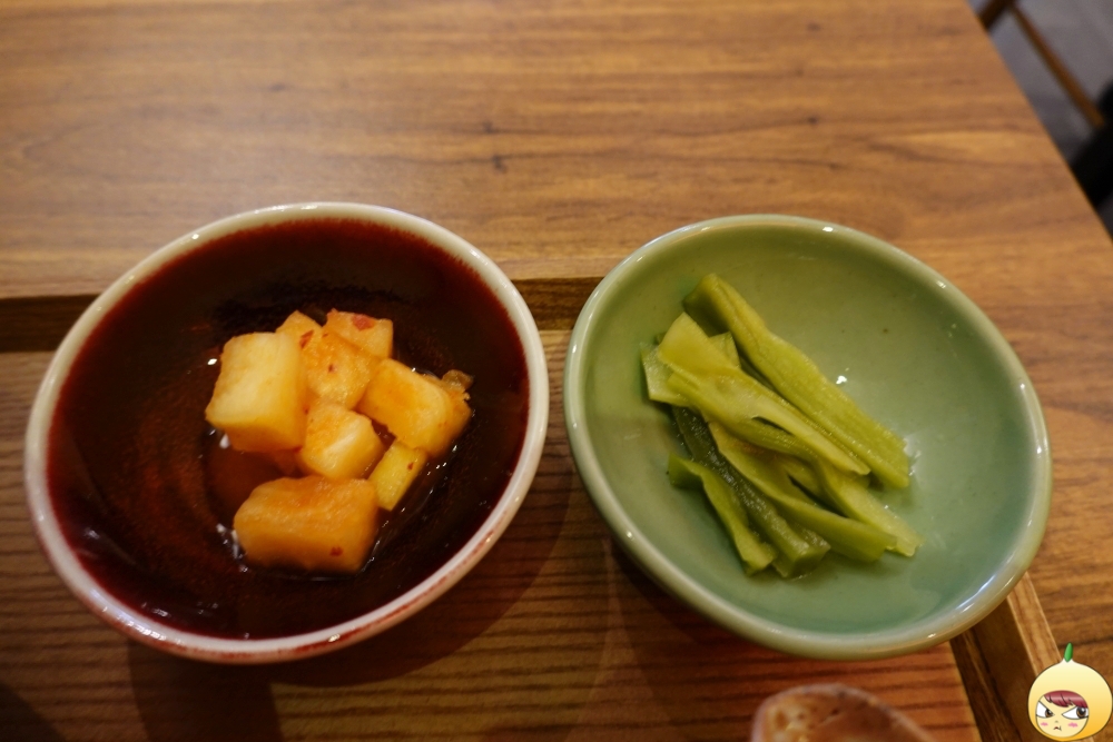 그 어떤 피클보다도 아삭함으로는 충분히 탑을 찍을 수 있는 상춧대나물과 너무나도 익숙하고 친숙한 깍두기가 밑반찬으로 나왔다. 그리고 양조나 국간장 아니고 직접 만든 간장도 조금 나왔다.
