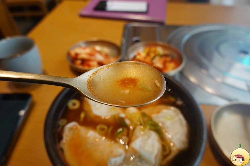 만둣국에 만두가 5개라고 너무 적다고 생각하면 안된다. 속 빈 강정이 아니라, 이래도 되나 싶을 정도로 속이 꽉 찬 만두이기 때문이다. 거짓말 조금 보태서 앞접시에 만두를 옮길때, 숟가락이 후들거릴 정도로 무게감이 엄청난다. 한입만 하기는 힘들고, 4~5번 정도 나눠서 먹어야 한다. 이북만두답게 간은 슴슴하니 담백하다. 간장에 찍어서 먹어도 되지만, 그냥 먹는 편이다. 만두 먹고, 바로 국물을 먹으면 입 안에서 작은 만둣국이 완성된다.