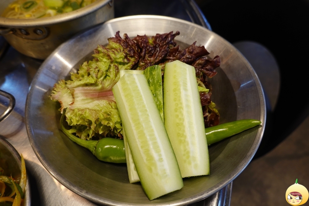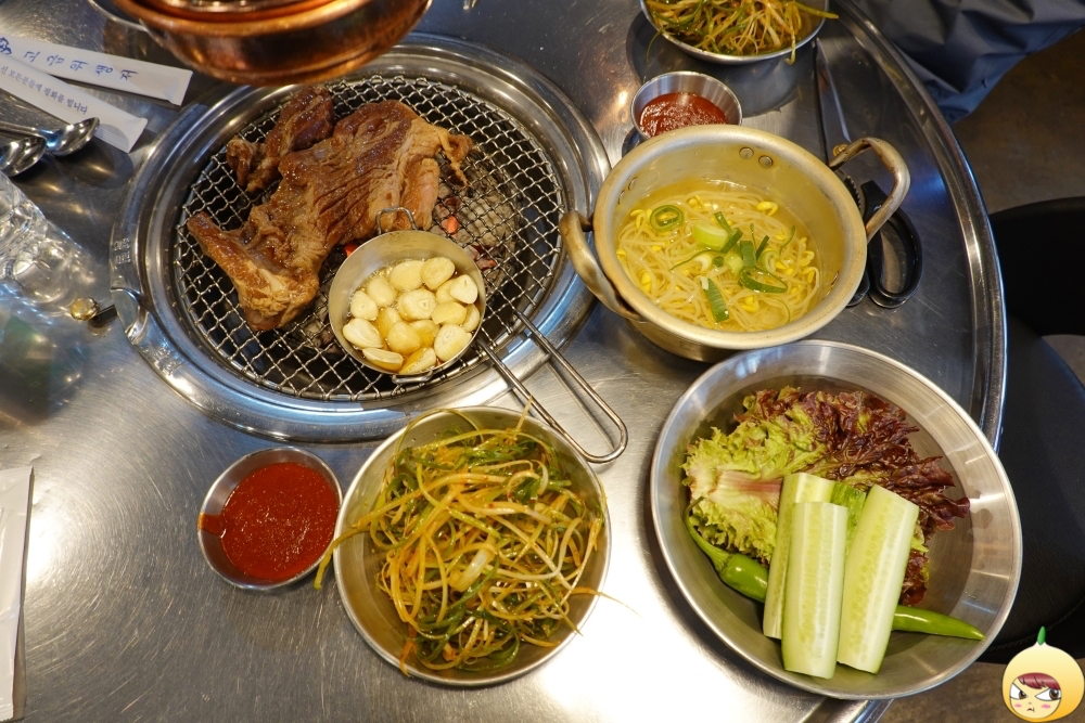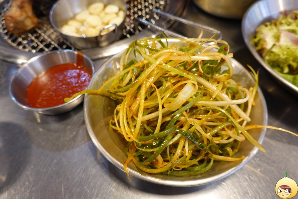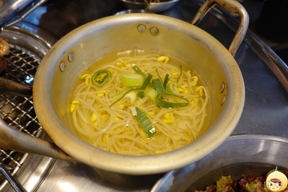 기본찬은 단촐하다. 쌈장대신 고추장이 나왔고, 고기이니 쌈채소는 당연인데 깻잎은 없고 상추만 있다. 고깃집에 가면 늘 나오는 하얀 무생채는 없지만, 대신 파채에 슴슴한 콩나물국이 있다. 처음에는 반찬을 다 가져다 주지만 리필은 셀프다.