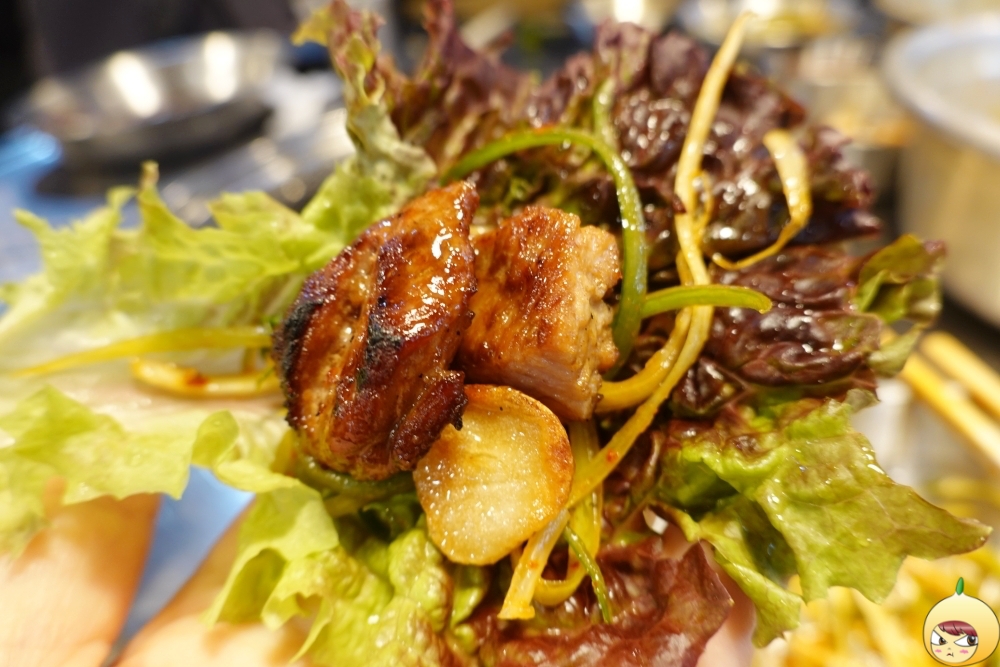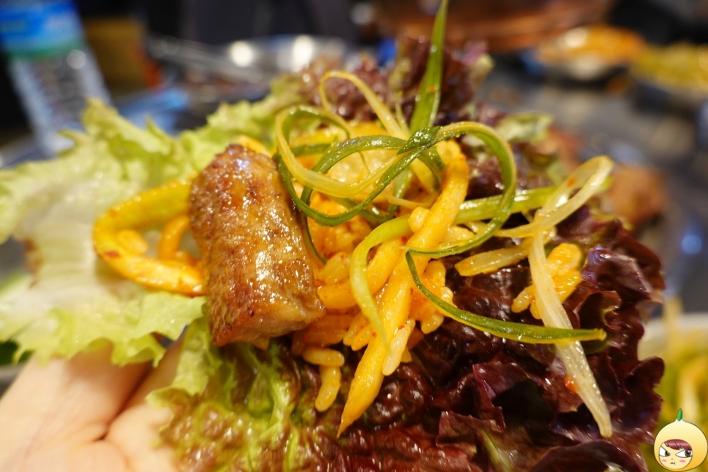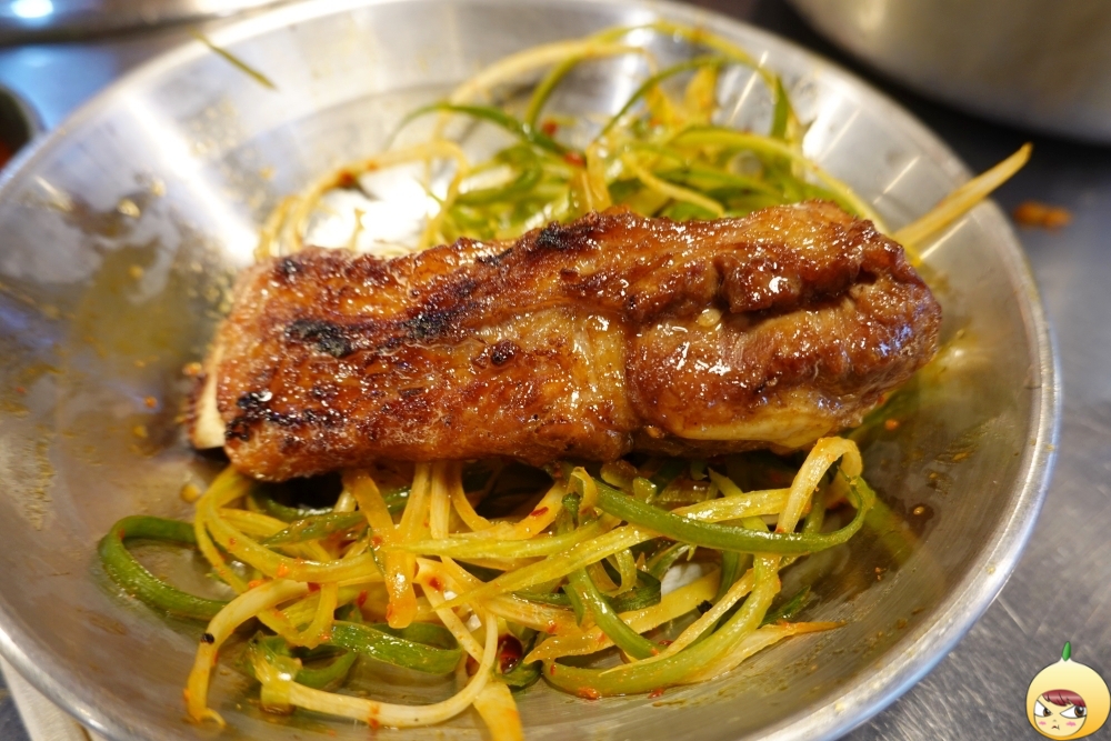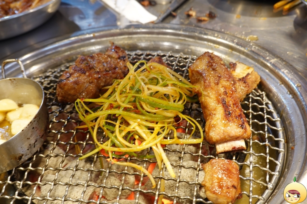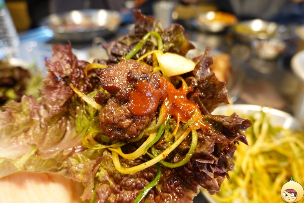생갈비라면 비계가 있고 없고의 차이를 확실하게 알 수 있는데, 양념은 힘들다. 그래서 고기만 먹지 않고 무조건 쌈이다. 혹시나 비계의 질감이 느껴질 수 있으니, 파채는 잔뜩 올려서 비계인듯 아닌듯 몰라야 많이 먹을 수 있다. 도톰한 고기 속에 감춰있는 육즙이 저작운동을 통해 입안 가득 퍼지고, 여기에 마늘과 상추, 파채가 더해지니 맛이 없다면 반칙이다.