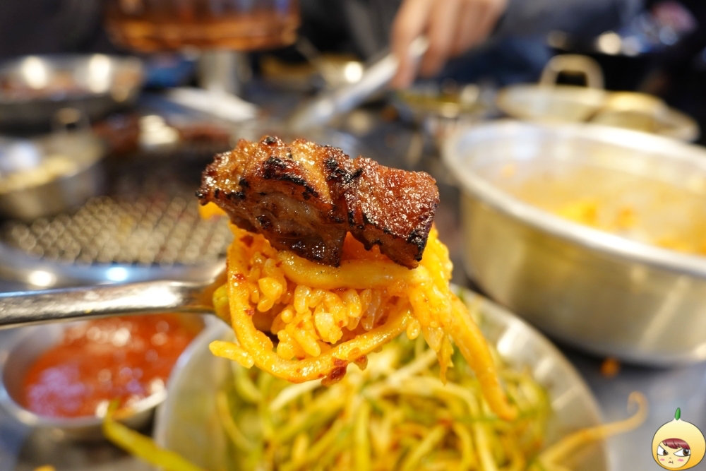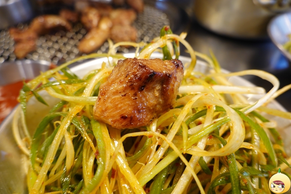 고기는 구워야 제맛이다. 고기가 익어가는 동안 침샘은 벌써 폭발을 했고, 어서빨리 익어라 익어라~ 하면서 주문을 외운다. 드디어 그 시간이 왔고, 본격적으로 달릴 준비를 한다. 우선 비계없는 살코기 부위만 골라서 파채 위에 살포시 올린다. 돼지갈비가 나왔을때, 양념이 과하지 않아 보이더니 슴슴하다 싶을 정도로 간이 약하고, 단맛 역시 그렇다.