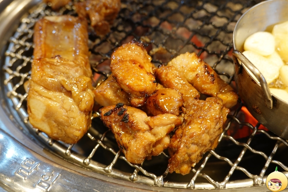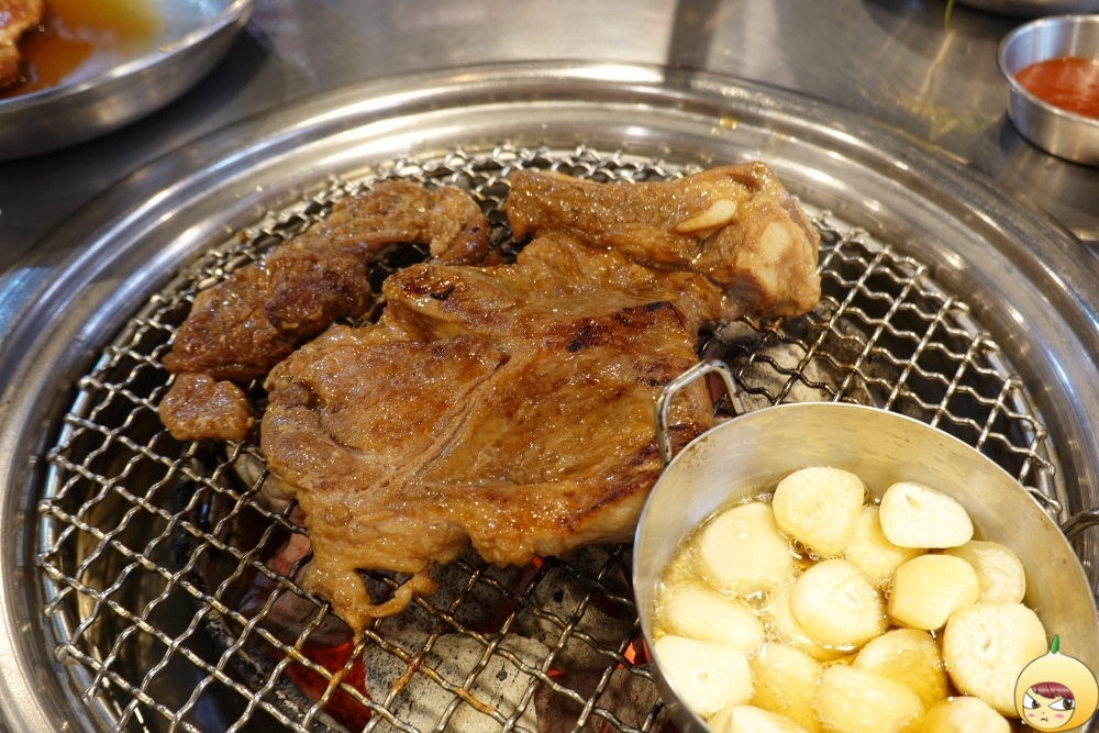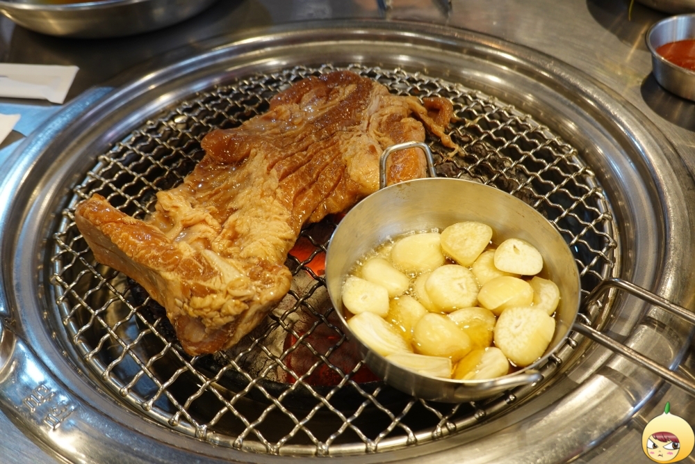 돼지갈비, 이게 얼마만인가 싶다. 집에서는 불판에 구워서 먹는 갈비보다는 주로 찜을 먹기에, 갈비는 우리집 대표 외식메뉴였다. 어렸을때는 자주 먹었는데, 바다먹거리 맛에 흠뻑 빠지면서 육고기를 그동안 넘 멀리했다. 사실 비계를 먹지 못하니, 가족이 아닌 사람들과 고기를 먹을때는 비계를 골라내는 모습이 그닥 좋게 보이지 않아서 꺼려했던 적이 많았다. 가족은 아니지만 친구가 이런 사정을 다 알고 있으니 이번에는 불편함 없이 맘꺽 먹을 생각이다. 생마늘도 좋지만, 구운마늘도 나쁘지 않다. 불판에 너무 오래 두면 탈 수 있으니 노릇노릇 적당히 익었을때 빼야 한다.