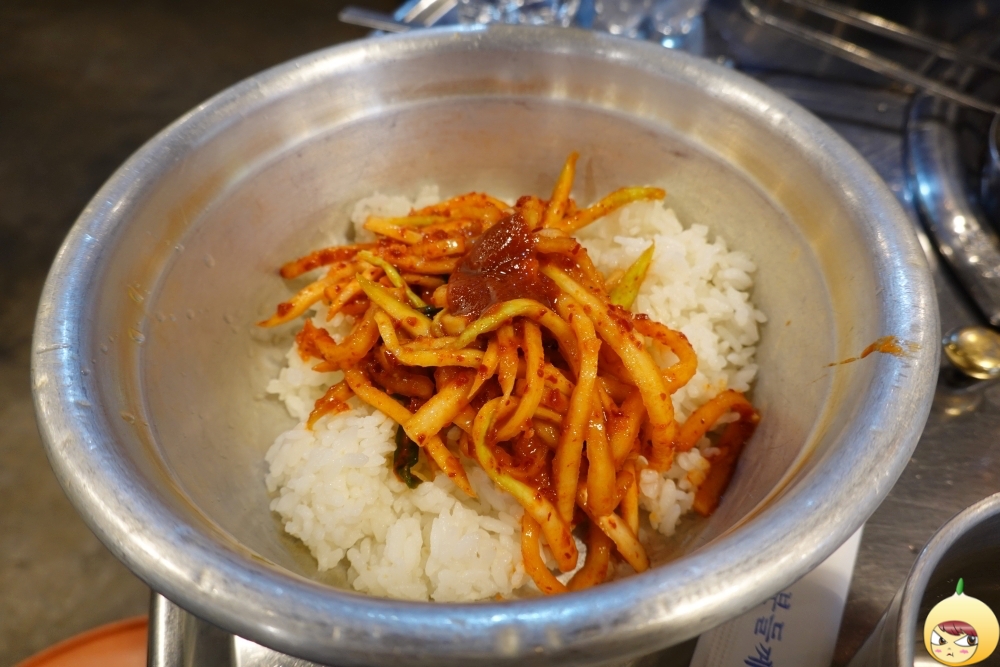개인적으로 고기를 먹을때 밥은 먹지 않지만, 무채비빔밥은 꼭 먹어야 한다고 해서 주문을 했다. 밥과 무채 그리고 참기름뿐으로 평범하지만 요게 돼지갈비와 만나면 엄청난 시너지를 발휘한다. 집에서는 계란후라이를 올려서 비벼먹지만, 여기서는 돼지갈비를 올려서 먹을거다.