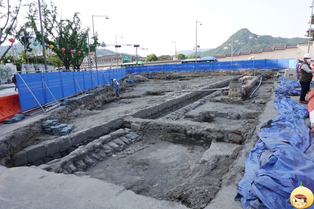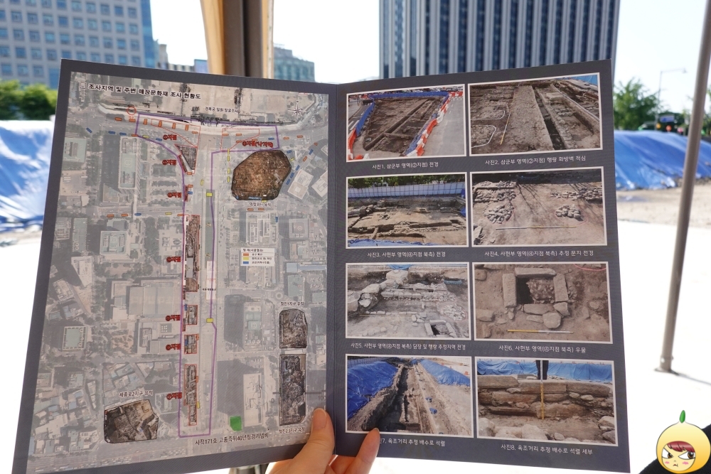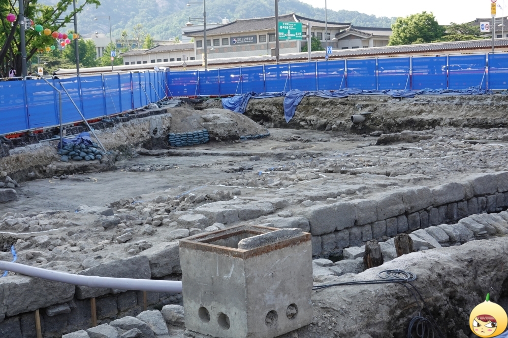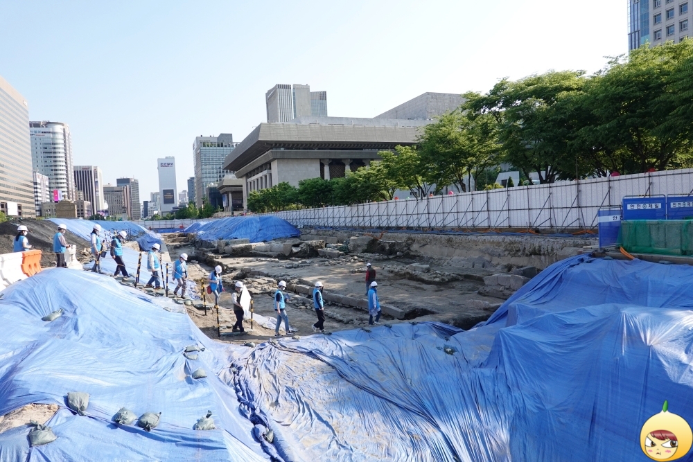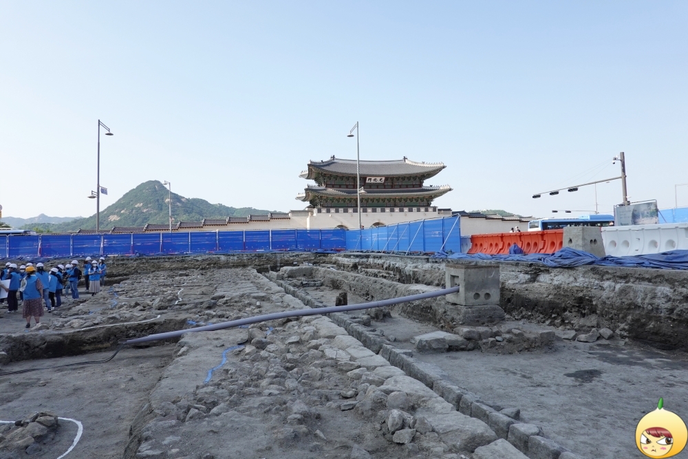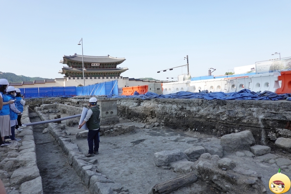 섬이었던 광화문광장은 육지(?)가 되기 위해 현재 공사 중이다. 관계자외 출입금지인 이곳을 당당히 들어왔다. 이유는 광화문광장 아래 매몰되었던 발굴문화재를 견학하기 위해서다. 광화문광장 시민참여단이기도 하고, 역사덕후로서 이런 기회를 그냥 두고 볼 수는 없다.
